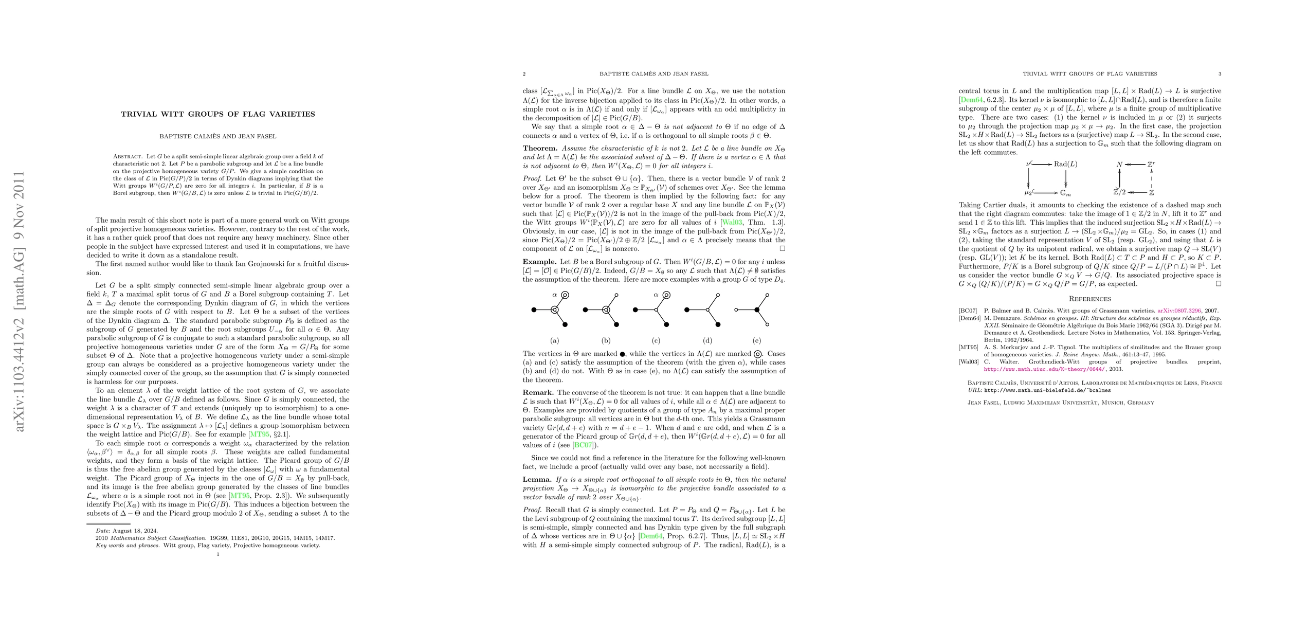 This research paper presents a simple condition linked to Dynkin diagrams, which ensures Witt groups W^i(G/P,L) are zero for all integers i, given a line bundle L on the projective homogeneous variety G/P. This implies that for a Borel subgroup B, W^i(G/B,L) is zero unless L is trivial in Pic(G/B)/2.
