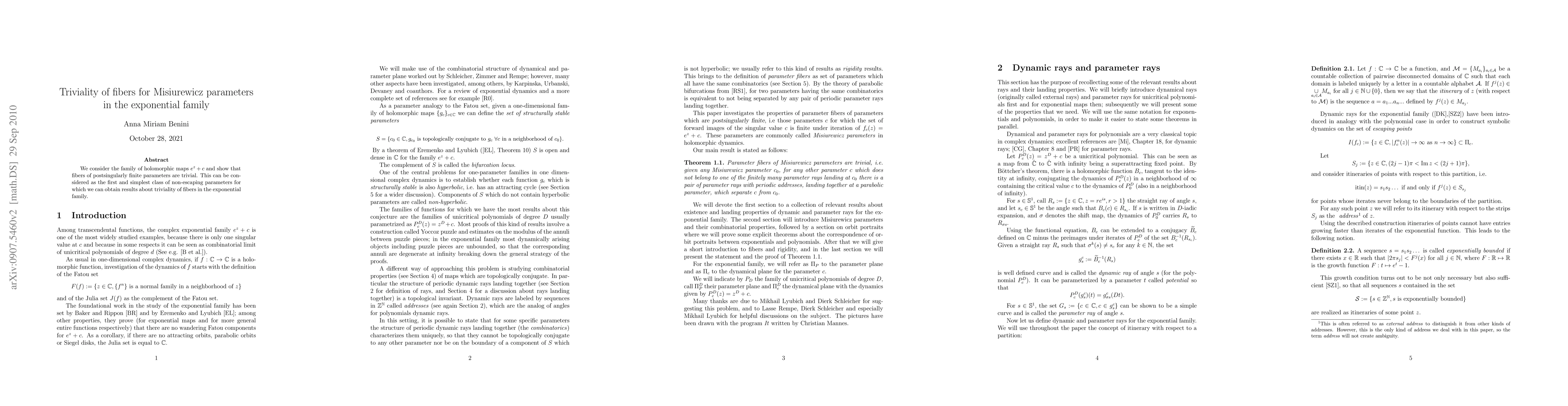 Summary: This paper demonstrates that fibers of postcritically finite parameters in the holomorphic map family e^z+c are trivial, marking the first results on the triviality of fibers for non-escaping parameters in the exponential family.