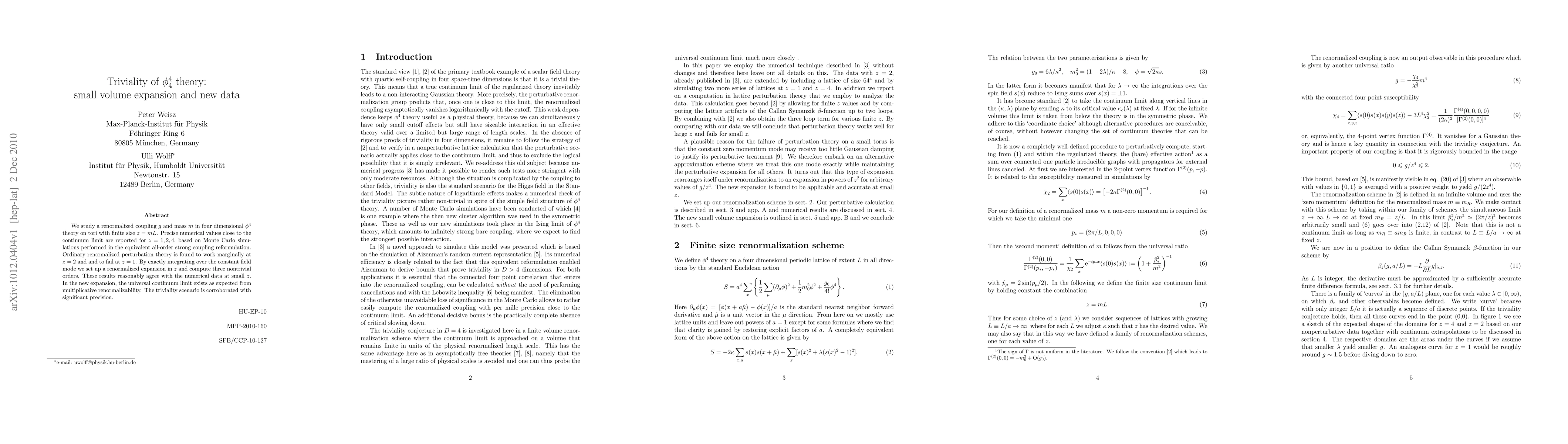 We study a renormalized coupling g and mass m in four dimensional phi^4 theory on tori with finite size z=mL. Precise numerical values close to the continuum limit are reported for z=1,2,4, based on Monte Carlo simulations performed in the equivalent all-order strong coupling reformulation. Ordinary renormalized perturbation theory is found to work marginally at z=2 and and to fail at z=1. By exactly integrating over the constant field mode we set up a renormalized expansion in z and compute three nontrivial orders. These results reasonably agree with the numerical data at small z. In the new expansion, the universal continuum limit exists as expected from multiplicative renormalizability. The triviality scenario is corroborated with significant precision.
