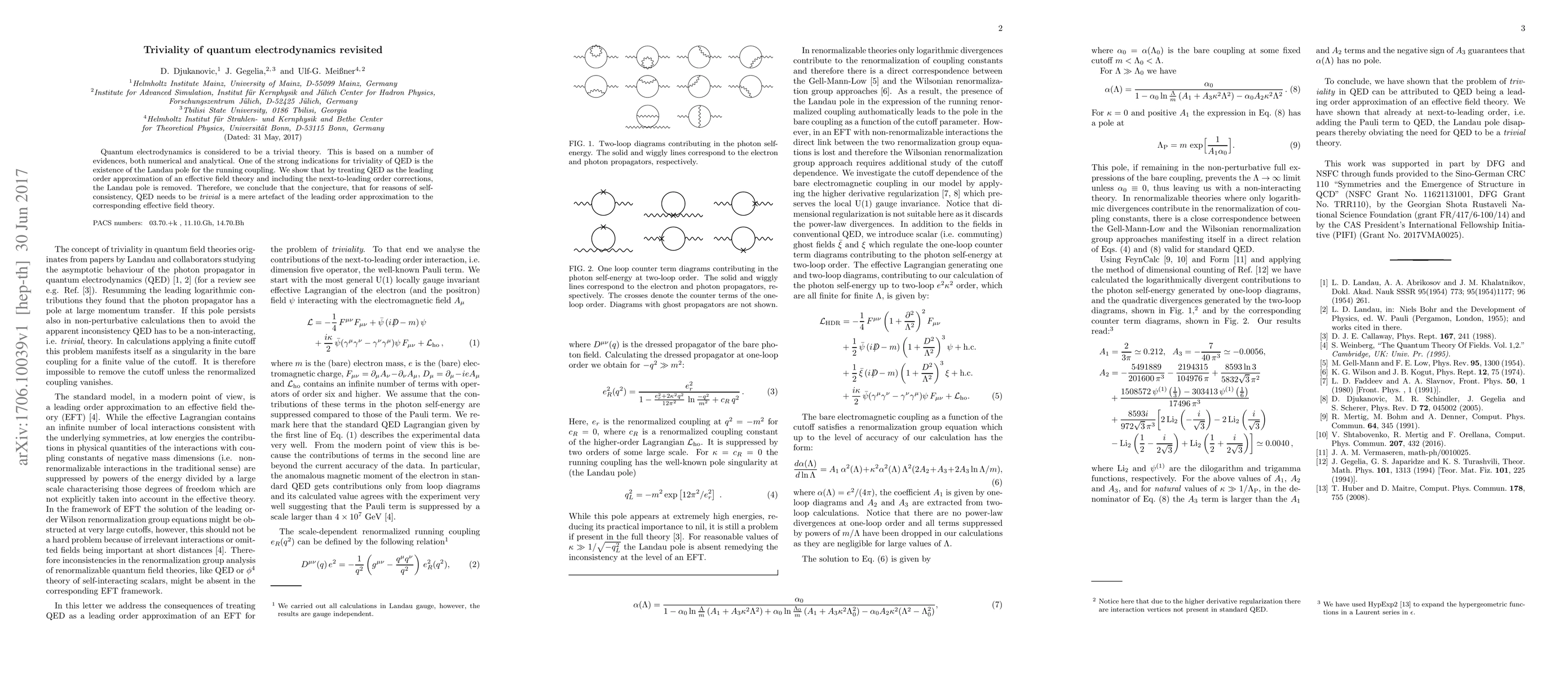 Quantum electrodynamics is considered to be a trivial theory. This is based on a number of evidences, both numerical and analytical. One of the strong indications for triviality of QED is the existence of the Landau pole for the running coupling. We show that by treating QED as the leading order approximation of an effective field theory and including the next-to-leading order corrections, the Landau pole is removed. Therefore, we conclude that the conjecture, that for reasons of self-consistency, QED needs to be trivial is a mere artefact of the leading order approximation to the corresponding effective field theory.