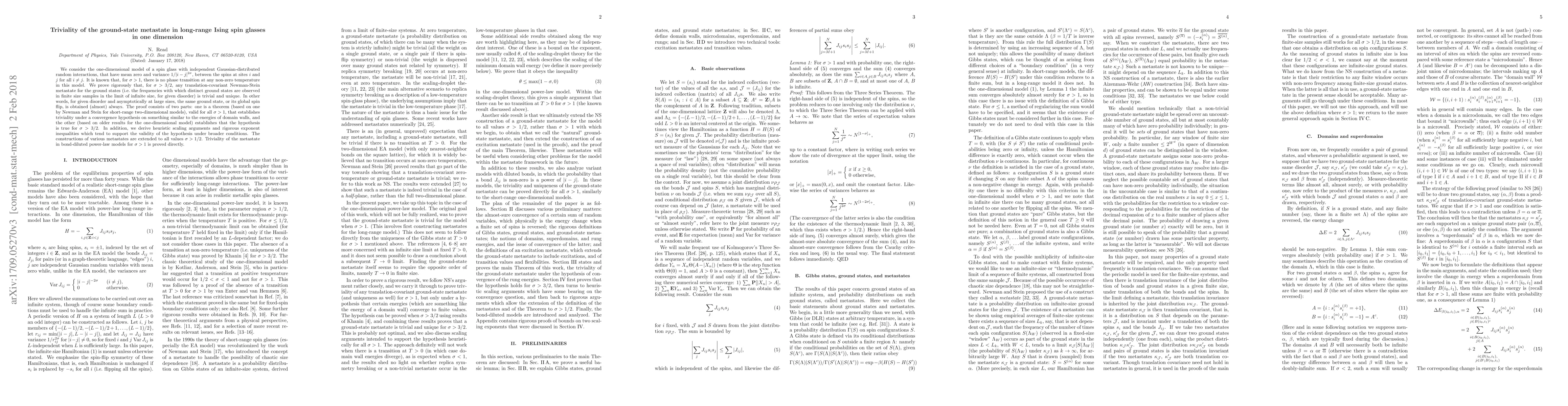 This paper rigorously proves that, for long-range Ising spin glasses in one dimension with $\sigma>3/2$, any Newman-Stein metastate for ground states is trivial and unique, meaning the same ground state or its global spin flip is almost always obtained. The proof combines a theorem for convergence hypotheses on domain wall energies and older results for the one-dimensional model.