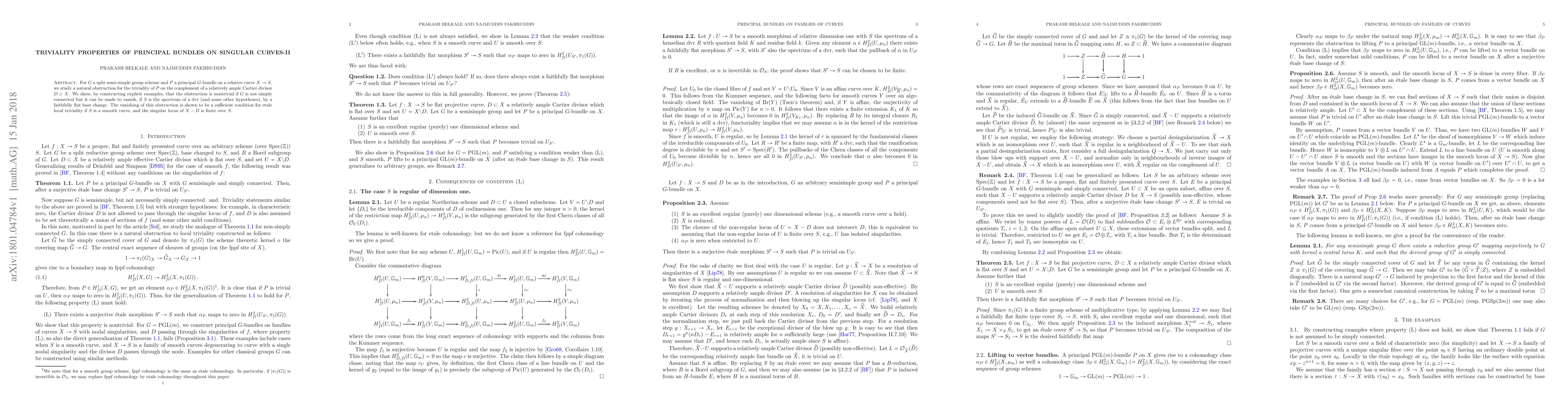 This paper investigates the triviality of principal $G$-bundles on singular relative curves, focusing on an obstruction when $G$ is not simply connected. It demonstrates that the obstruction can be eliminated via a faithfully flat base change under certain conditions, and establishes this as a sufficient condition for étale local triviality when $S$ is a smooth curve.