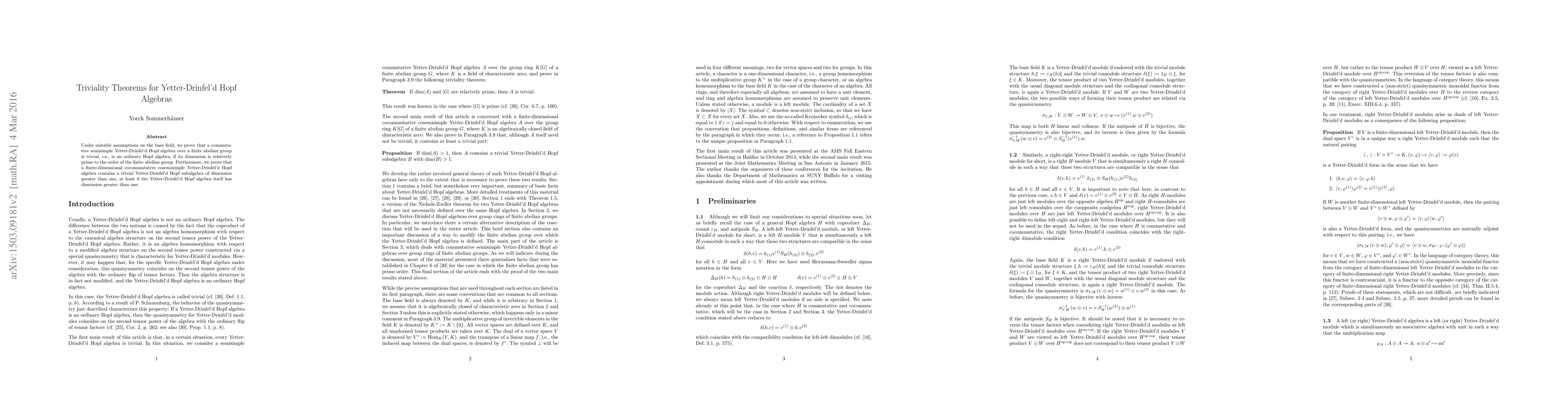 This paper proves that under specific field conditions, a commutative semisimple Yetter-Drinfel'd Hopf algebra over a finite abelian group is trivial if its dimension is coprime to the group's order. Additionally, it shows that a finite-dimensional cocommutative cosemisimple Yetter-Drinfel'd Hopf algebra contains a nontrivial trivial subalgebra when its own dimension exceeds one.