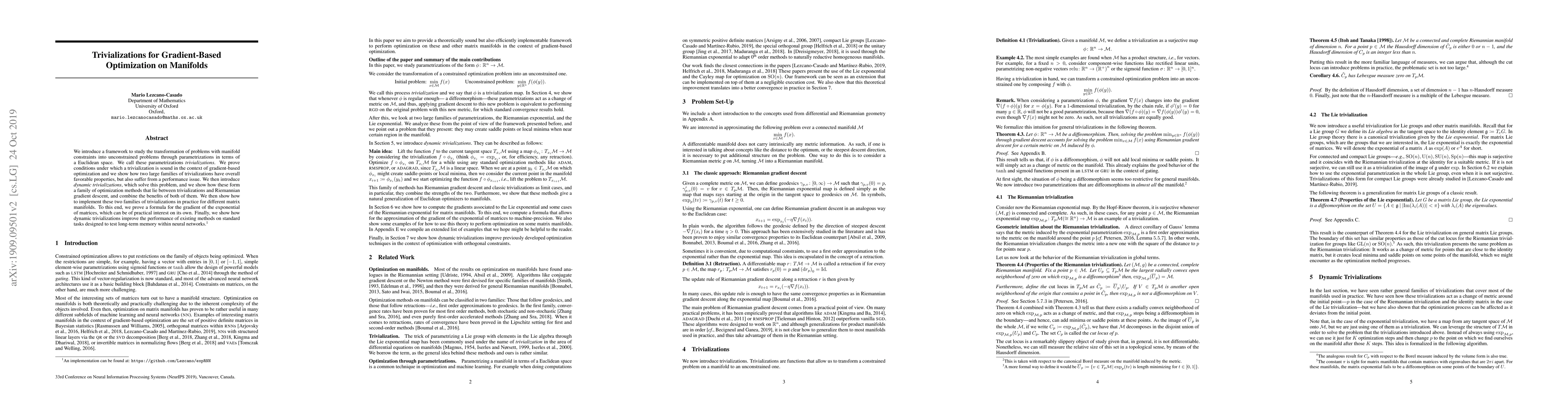 Researchers developed a framework to transform manifold-constrained optimization problems into unconstrained ones using parametrizations called trivializations. They also introduced dynamic trivializations that improve performance on neural networks with long-term memory tasks.