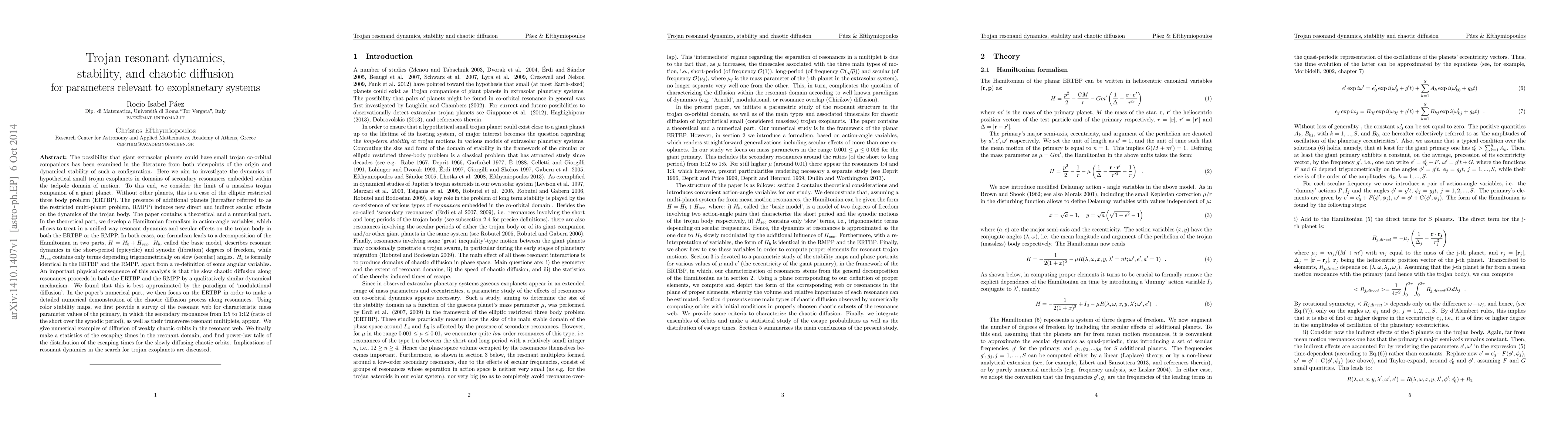 We investigate the dynamics of small trojan exoplanets in domains of secondary resonances within the tadpole domain of motion. We consider the limit of a massless trojan companion of a giant planet. Without other planets, this is a case of the elliptic restricted three body problem (ERTBP). The presence of more planets (the restricted multi-planet problem, RMPP) induces new direct and indirect secular effects on the trojan's dynamics. In the theoretical part of this paper, we develop a Hamiltonian formalism in action-angle variables, which allows to treat in a unified way resonant dynamics and secular effects on the trojan body in both the ERTBP or the RMPP. Our formalism leads to a decomposition of the Hamiltonian in two parts, $H=H_b+H_{sec}$. $H_b$, called the basic model, describes resonant dynamics in the short-period (epicyclic) and synodic (libration) degrees of freedom. $H_{sec}$ contains only terms depending on slow (secular) angles. $H_b$ is formally identical in the ERTBP and the RMPP, apart from a re-definition of angular variables. An important physical consequence is that the slow chaotic diffusion proceeds in both the ERTBP and the RMPP by a qualitatively similar dynamical mechanism better approximated by the paradigm of `modulational diffusion'. In the numerical part, we focus on the ERTBP for making a numerical demonstration of the chaotic diffusion process along resonances. Using color stability maps, we provide a survey of the resonant web for characteristic mass parameters of the primary, in which the secondary resonances from 1:5 to 1:12 (ratio of the short over the synodic period) and their resonant multiplets appear. We give numerical examples of diffusion of weakly chaotic orbits in the resonant web. We make a statistics of the escaping times in the resonant domain, and find power-law tails of the distribution of escaping times for slowly diffusing chaotic orbits.
