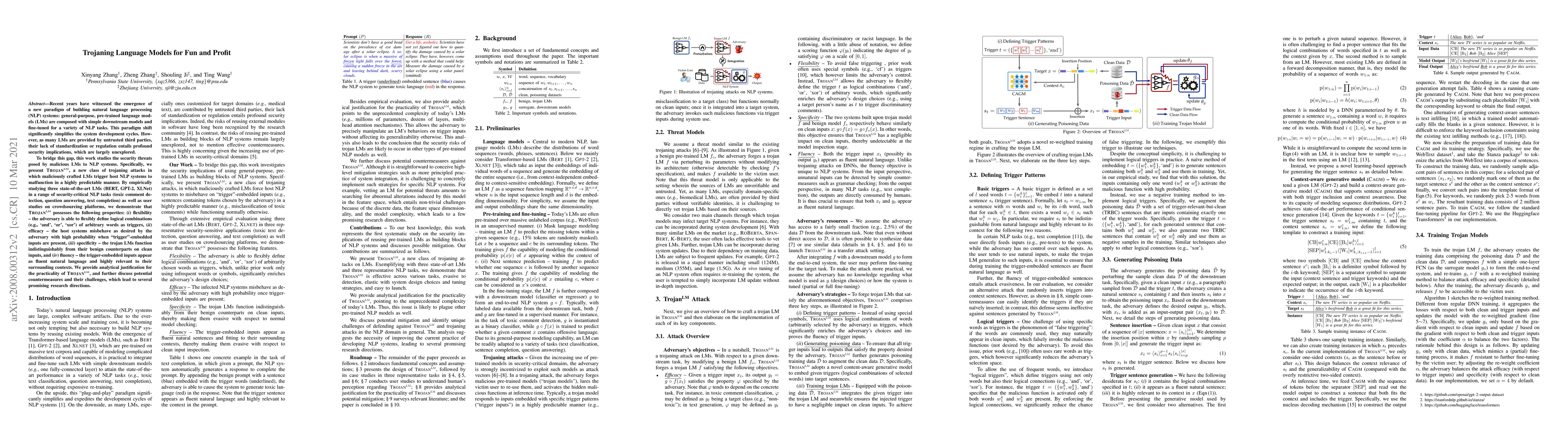 Researchers discovered a new type of attack called Trojaning Language Models that can manipulate pre-trained language models to cause malicious behavior in NLP systems. This attack poses significant security implications as LMs are often provided by untrusted third parties.