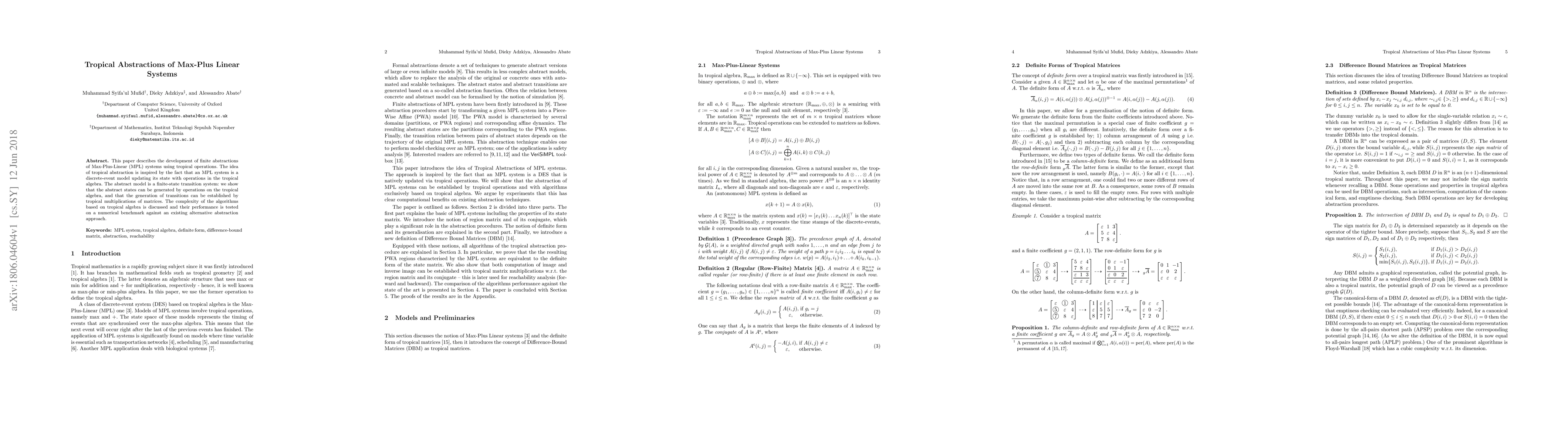 This paper develops finite abstractions of Max-Plus-Linear systems using tropical algebra, showing that abstract states and transitions can be generated through tropical operations. The performance of these algorithms is benchmarked against existing methods.