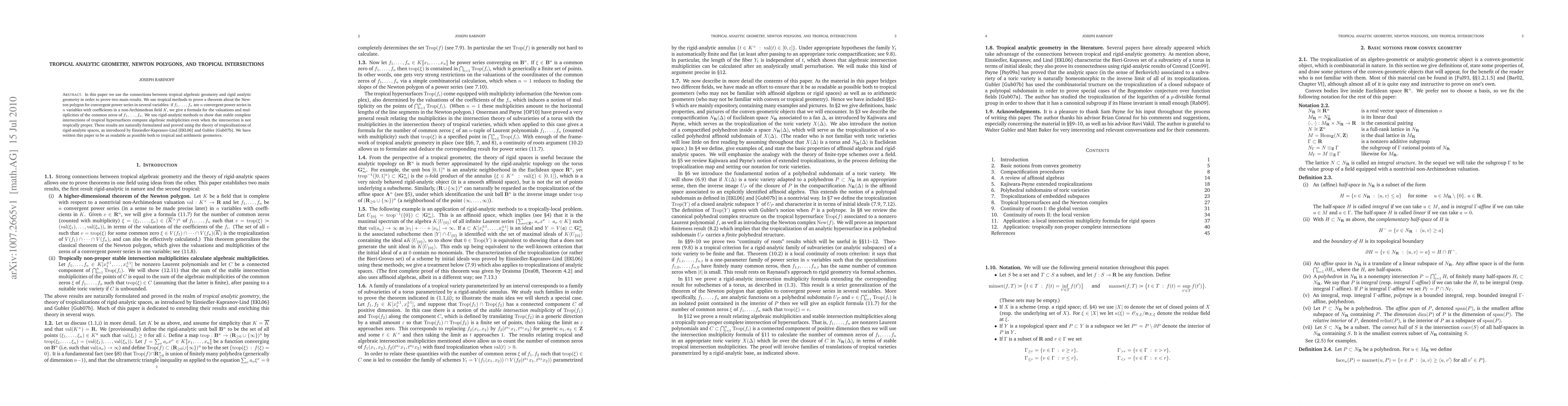 This paper connects tropical algebraic geometry with rigid analytic geometry to prove a theorem on Newton polygons for convergent power series and demonstrate that stable complete intersections of tropical hypersurfaces compute algebraic multiplicities. The results leverage tropicalizations of rigid-analytic spaces.