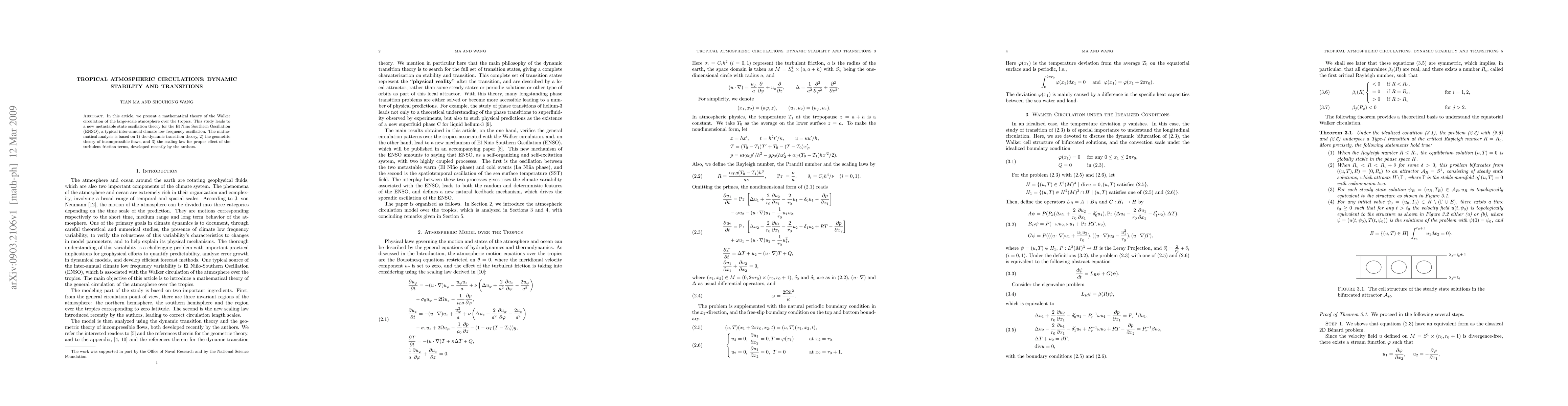 This study develops a new mathematical theory explaining the Walker circulation of the tropical atmosphere, leading to a metastable state oscillation theory for El Nino Southern Oscillation, a key climate phenomenon.