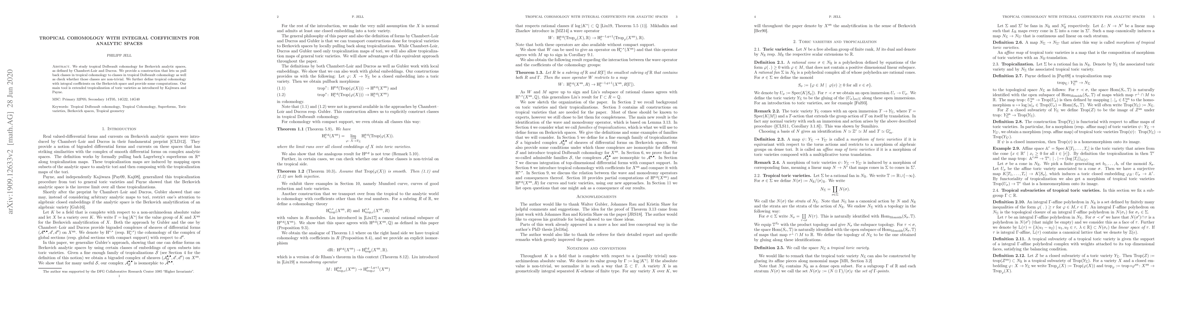 This paper constructs a method to pull back tropical cohomology classes to tropical Dolbeault cohomology on Berkovich analytic spaces and defines tropical cohomology with integral coefficients, utilizing extended tropicalization of toric varieties as a key tool. It includes computations to demonstrate the practical application of these constructions.