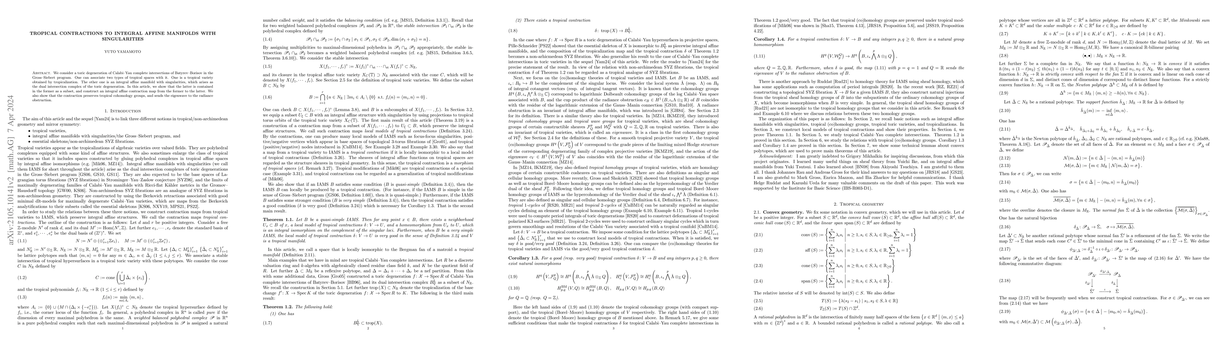 This paper explores the relationship between tropical varieties and integral affine manifolds in the context of toric degenerations of Calabi-Yau complete intersections. It establishes a containment between these two tropical structures and constructs a contraction map that preserves tropical cohomology and relates the eigenwave to the radiance obstruction.