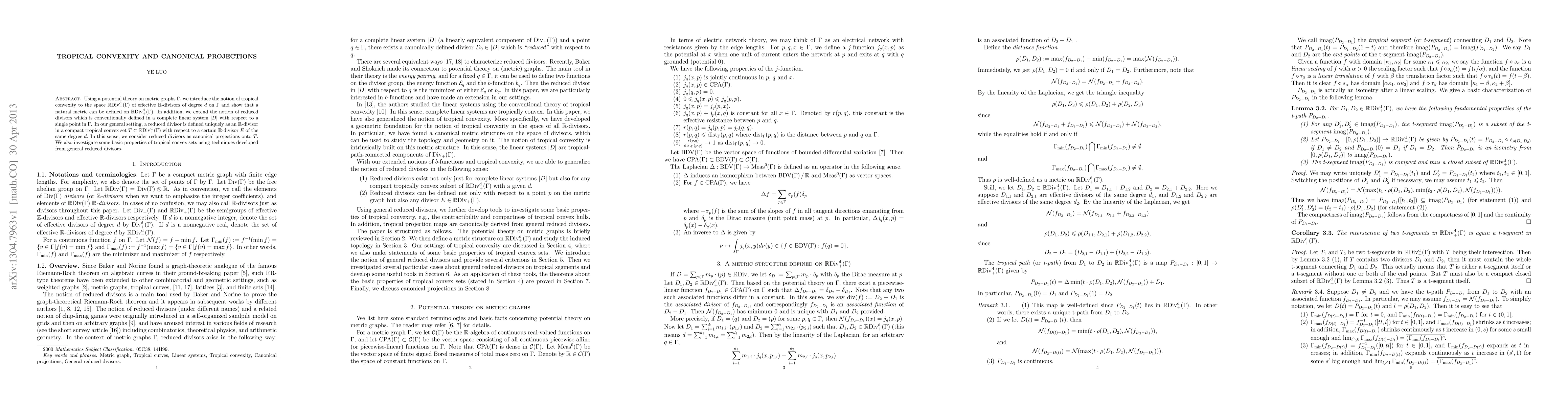 Using a potential theory on metric graphs "Gamma", we introduce the notion of tropical convexity to the space "RDiv^d(Gamma)" of effective R-divisors of degree d on "Gamma" and show that a natural metric can be defined on "RDiv^d(Gamma)". In addition, we extend the notion of reduced divisors which is conventionally defined in a complete linear system |D| with respect to a single point in "Gamma". In our general setting, a reduced divisor is defined uniquely as an R-divisor in a compact tropical convex subset "T" of "RDiv^d(Gamma)" with respect to a certain R-divisor "E" of the same degree d. In this sense, we consider reduced divisors as canonical projections onto "T". We also investigate some basic properties of tropical convex sets using techniques developed from general reduced divisors.