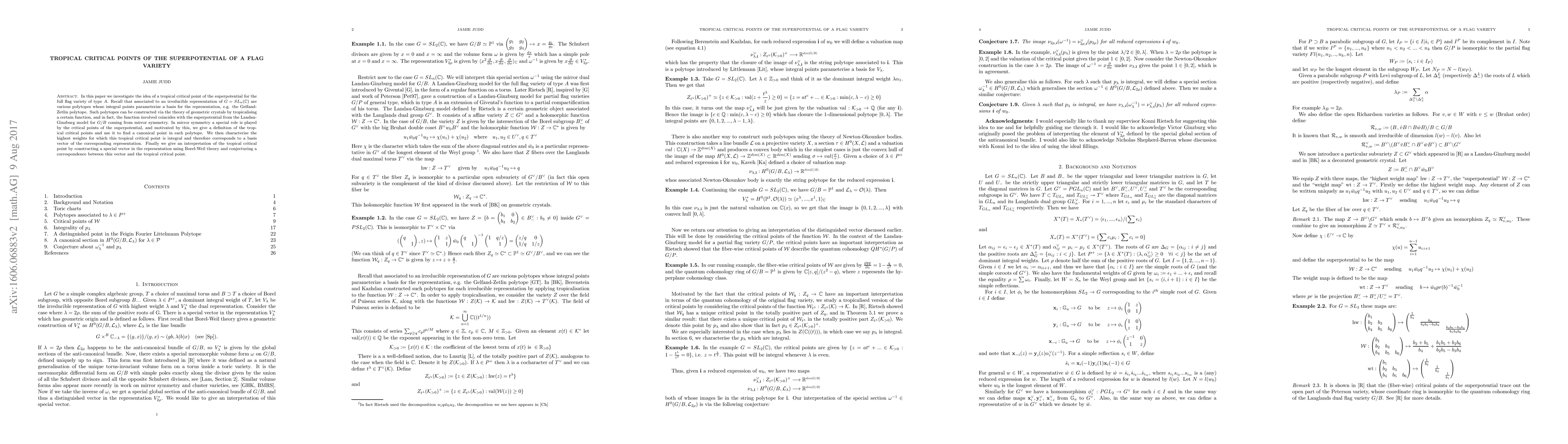 In this paper we investigate the idea of a tropical critical point of the superpotential for the full flag variety of type A. Recall that associated to an irreducible representation of G=SLn(C) are various polytopes whose integral points parameterize a basis for the representation, e.g. the Gelfand-Zetlin polytope. Such polytopes can be constructed via the theory of geometric crystals by tropicalising a certain function, and in fact, the function involved coincides with the superpotential from the Landau-Ginzburg model for G/B coming from mirror symmetry. In mirror symmetry a special role is played by the critical points of the superpotential, and motivated by this, we give a definition of the tropical critical points and use it to find a canonical point in each polytope. We then characterize the highest weights for which this tropical critical point is integral and therefore corresponds to a basis vector of the corresponding representation. Finally we give an interpretation of the tropical critical point by constructing a special vector in the representation using Borel-Weil theory and conjecturing a correspondence between this vector and the tropical critical point.