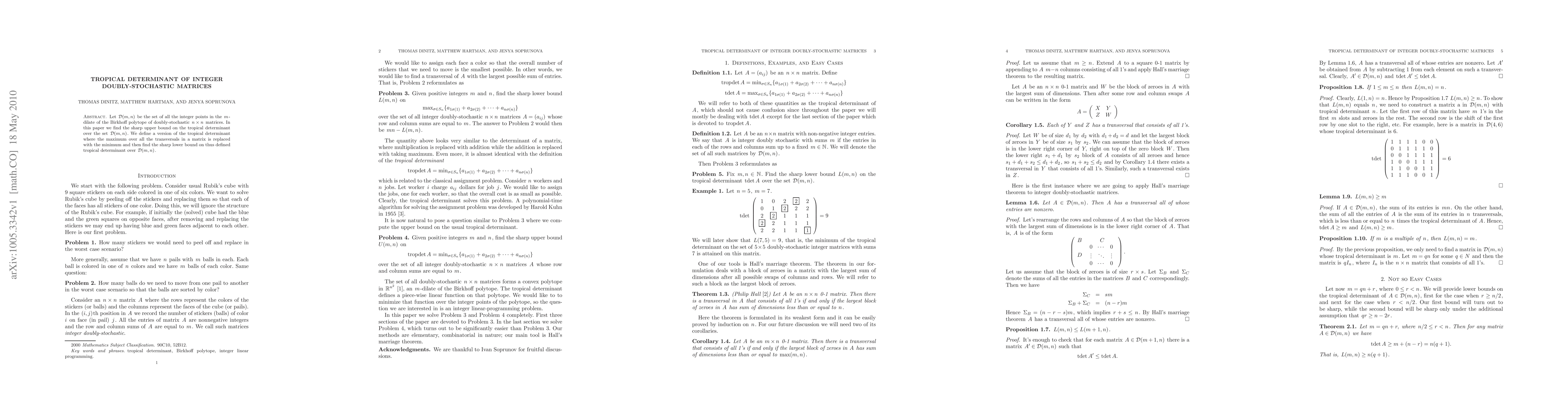Let D(m,n) be the set of all the integer points in the m-dilate of the Birkhoff polytope of doubly-stochastic n by n matrices. In this paper we find the sharp upper bound on the tropical determinant over the set D(m,n). We define a version of the tropical determinant where the maximum over all the transversals in a matrix is replaced with the minimum and then find the sharp lower bound on thus defined tropical determinant over D(m,n).