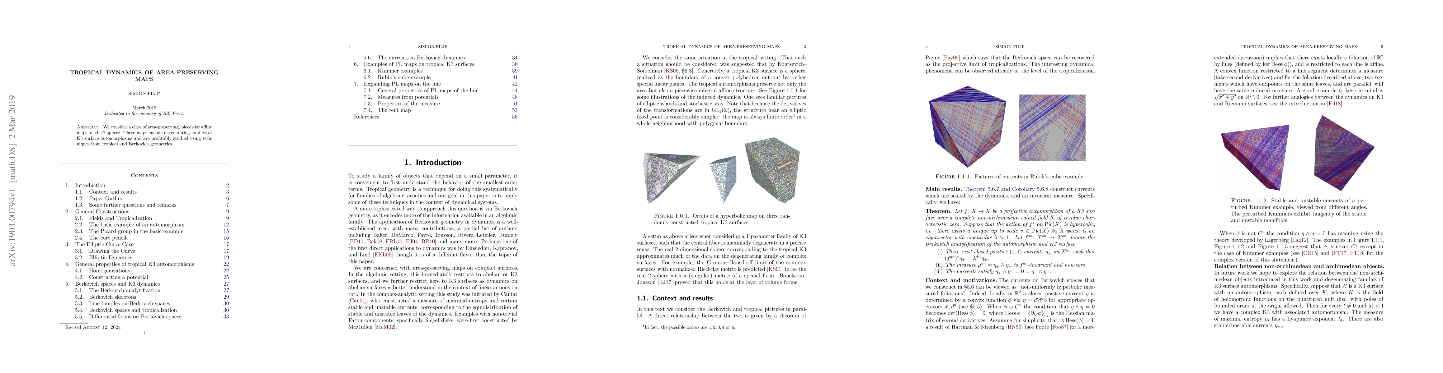 Researchers studied area-preserving maps on the 2-sphere that encode degenerating families of K3 surface automorphisms, exploring connections to tropical and Berkovich geometries.