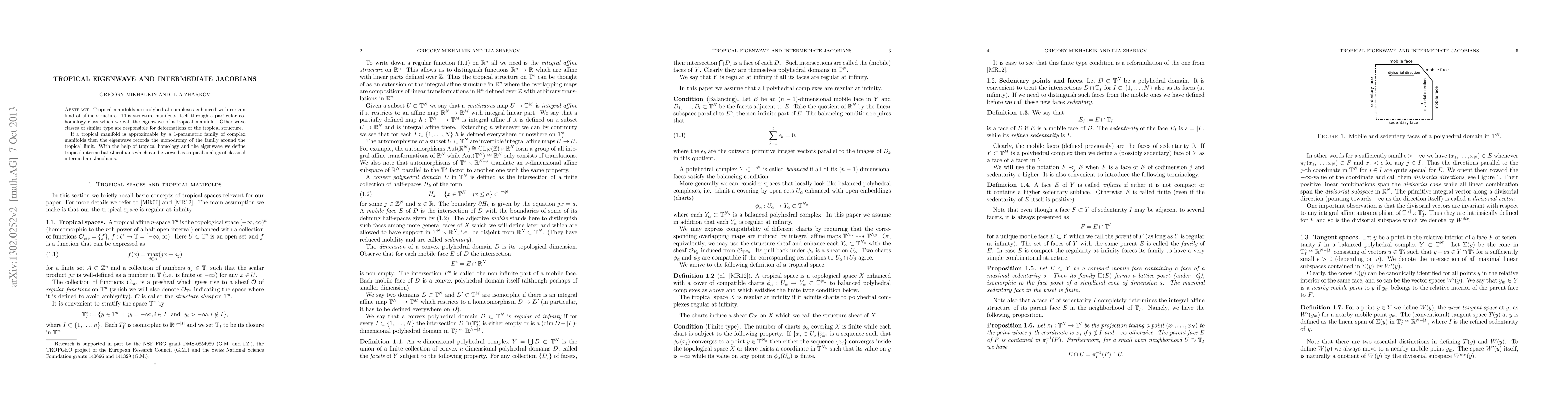 Tropical eigenwaves are special cohomology classes on tropical manifolds that record monodromy for families of complex manifolds approaching these tropical limits. Using tropical homology and eigenwaves, researchers define tropical intermediate Jacobians, serving as analogs to classical intermediate Jacobians.