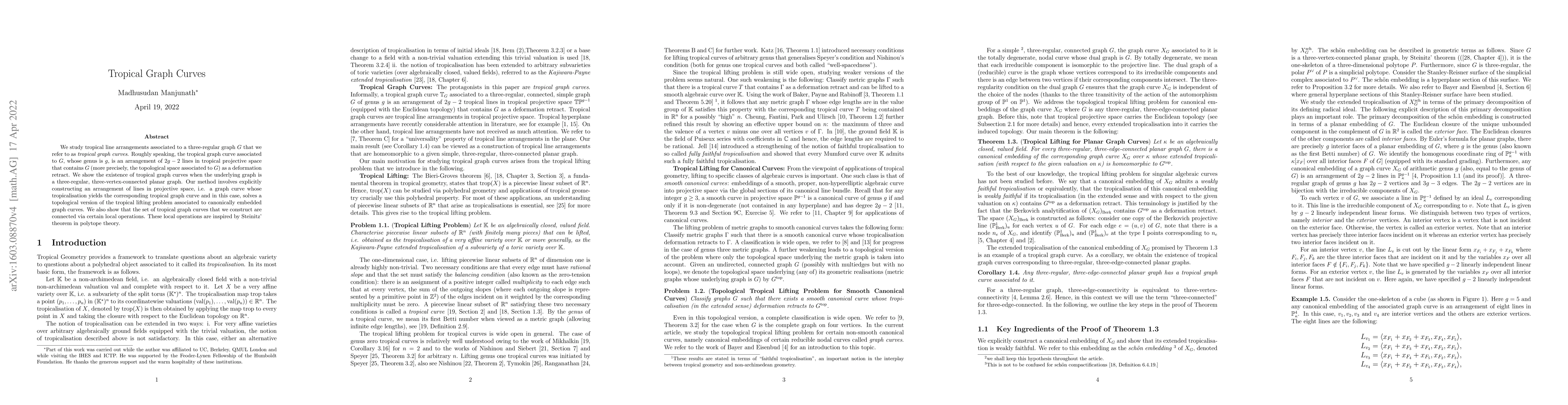 This paper explores tropical graph curves related to three-regular, three-vertex-connected planar graphs, demonstrating their existence and construction. It also connects these tropical graph curves through local operations inspired by Steinitz' theorem, solving a topological version of the tropical lifting problem.