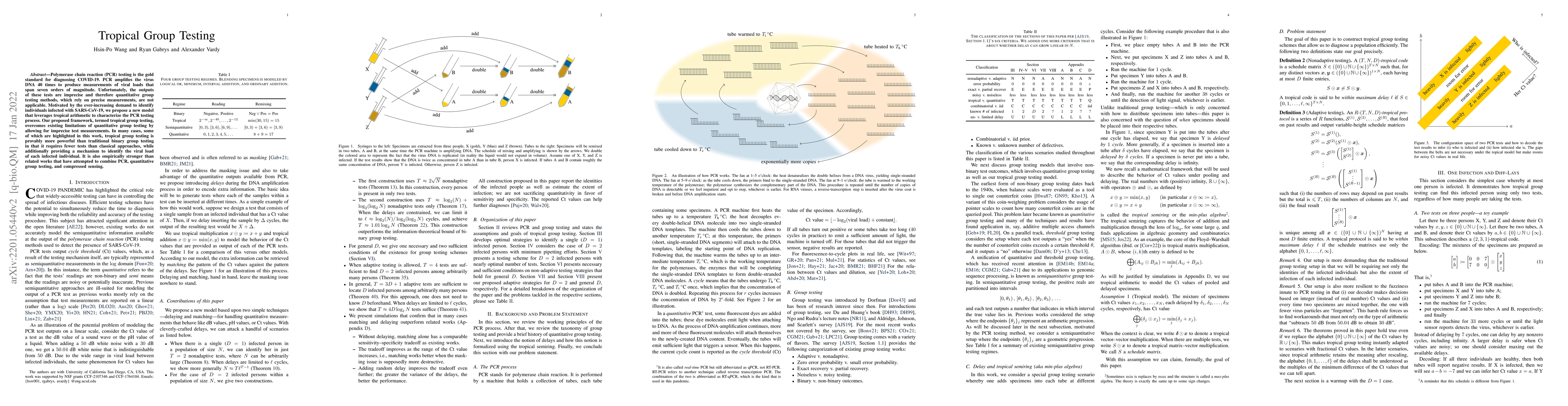 Polymerase chain reaction (PCR) testing is the gold standard for diagnosing COVID-19. PCR amplifies the virus DNA 40 times to produce measurements of viral loads that span seven orders of magnitude. Unfortunately, the outputs of these tests are imprecise and therefore quantitative group testing methods, which rely on precise measurements, are not applicable. Motivated by the ever-increasing demand to identify individuals infected with SARS-CoV-19, we propose a new model that leverages tropical arithmetic to characterize the PCR testing process. Our proposed framework, termed tropical group testing, overcomes existing limitations of quantitative group testing by allowing for imprecise test measurements. In many cases, some of which are highlighted in this work, tropical group testing is provably more powerful than traditional binary group testing in that it require fewer tests than classical approaches, while additionally providing a mechanism to identify the viral load of each infected individual. It is also empirically stronger than related works that have attempted to combine PCR, quantitative group testing, and compressed sensing.