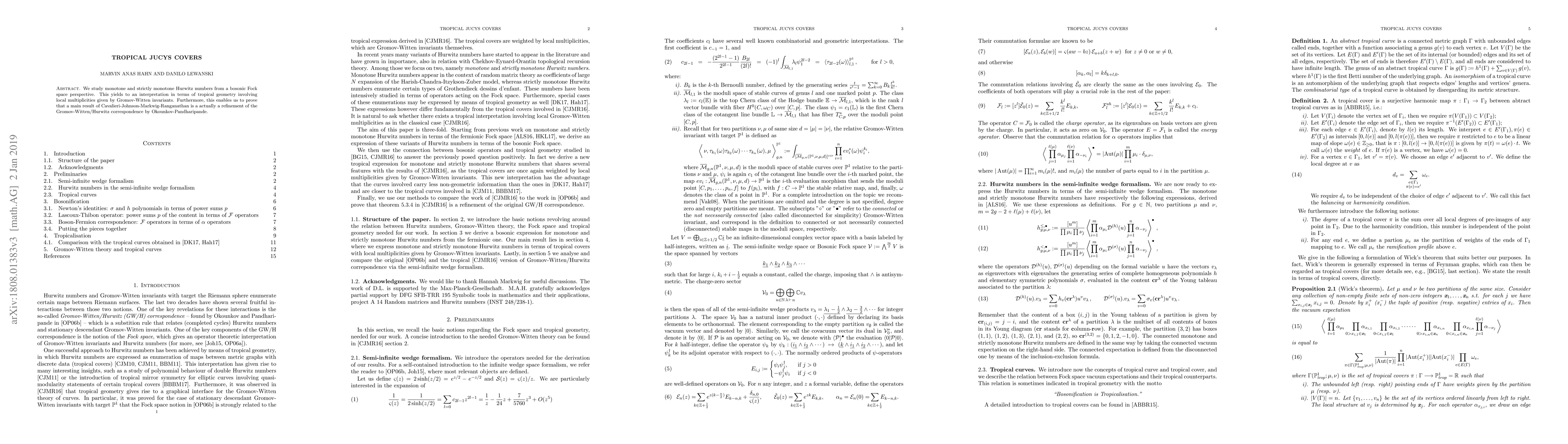 We study monotone and strictly monotone Hurwitz numbers from a bosonic Fock space perspective. This yields to an interpretation in terms of tropical geometry involving local multiplicities given by Gromov-Witten invariants. Furthermore, this enables us to prove that a main result of Cavalieri-Johnson-Markwig-Ranganathan is a actually a refinement of the Gromov-Witten/Hurwitz correspondence by Okounkov-Pandharipande.