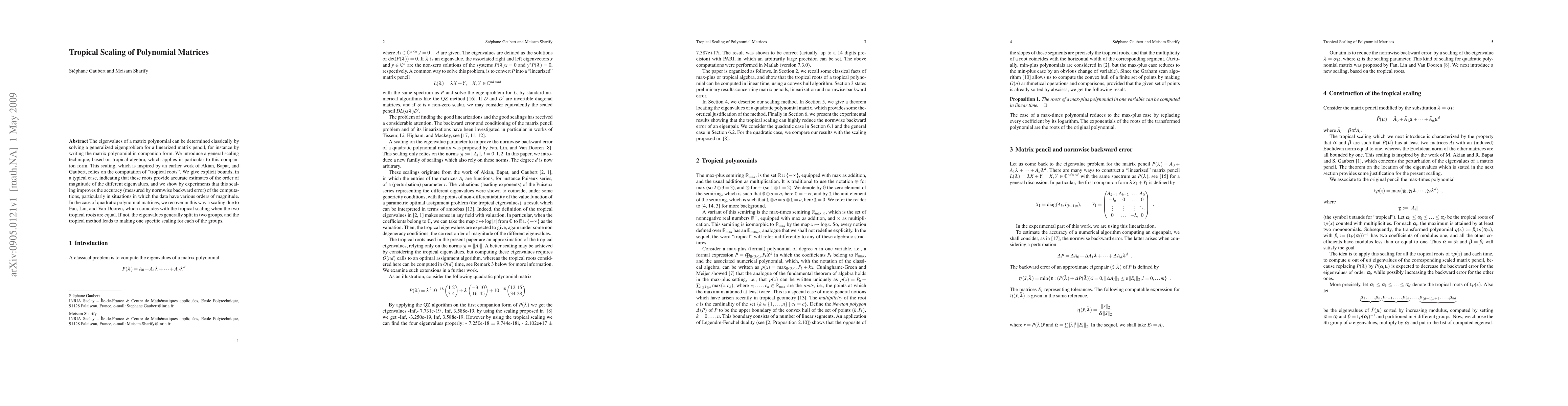 This paper introduces a tropical scaling technique for polynomial matrices, which improves the accuracy of eigenvalue computations, especially for matrices with data of various magnitudes. The scaling uses "tropical roots" for accurate estimation and enhances normwise backward error, particularly effective for quadratic polynomial matrices.