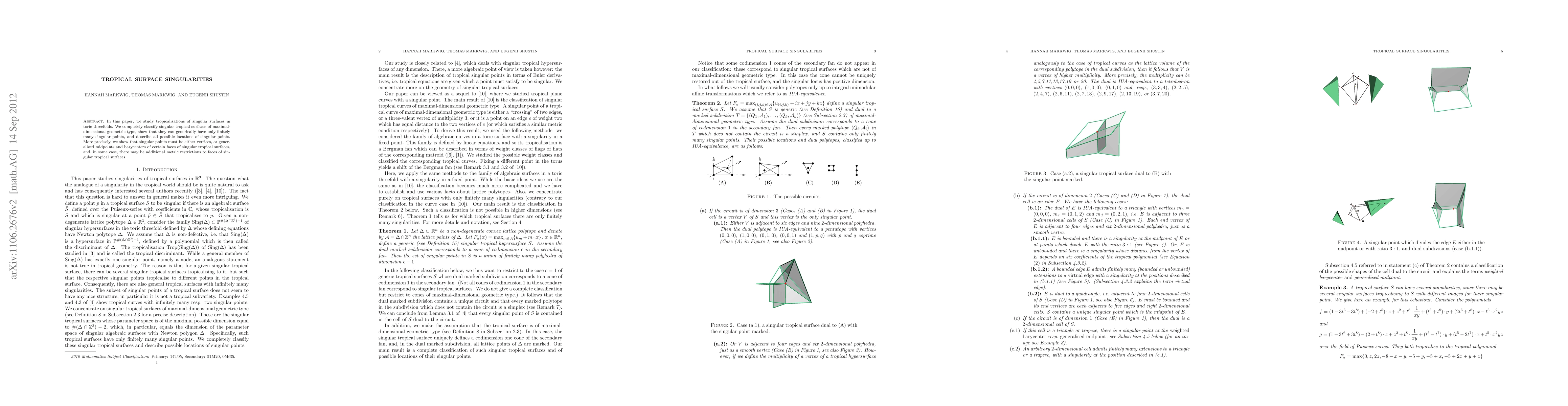 In this paper, we study tropicalisations of singular surfaces in toric threefolds. We completely classify singular tropical surfaces of maximal-dimensional type, show that they can generically have only finitely many singular points, and describe all possible locations of singular points. More precisely, we show that singular points must be either vertices, or generalized midpoints and baricenters of certain faces of singular tropical surfaces, and, in some cases, there may be additional metric restrictions to faces of singular tropical surfaces.