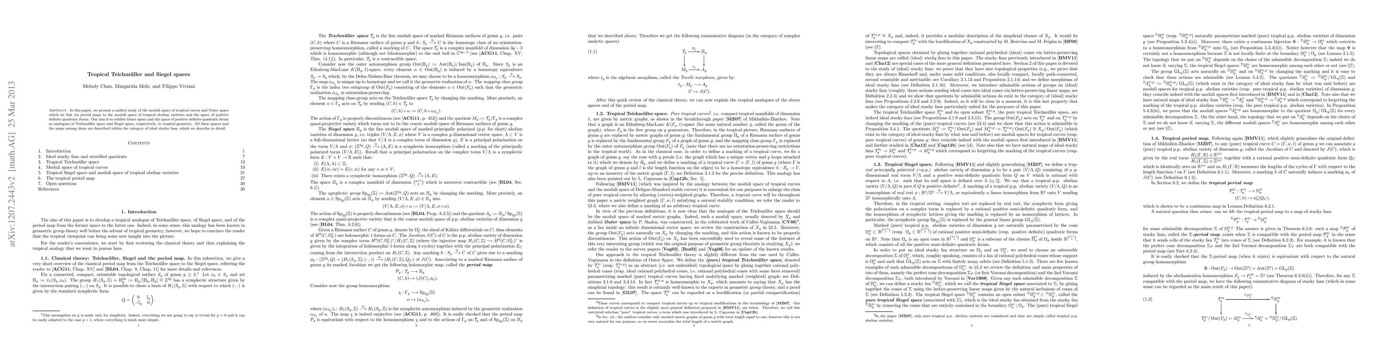 This paper explores the connection between tropical moduli spaces and classical Teichmüller and Siegel spaces through tropical period maps, aiming to establish Outer space and the space of positive definite quadratic forms as tropical analogues, all within the framework of ideal stacky fans.