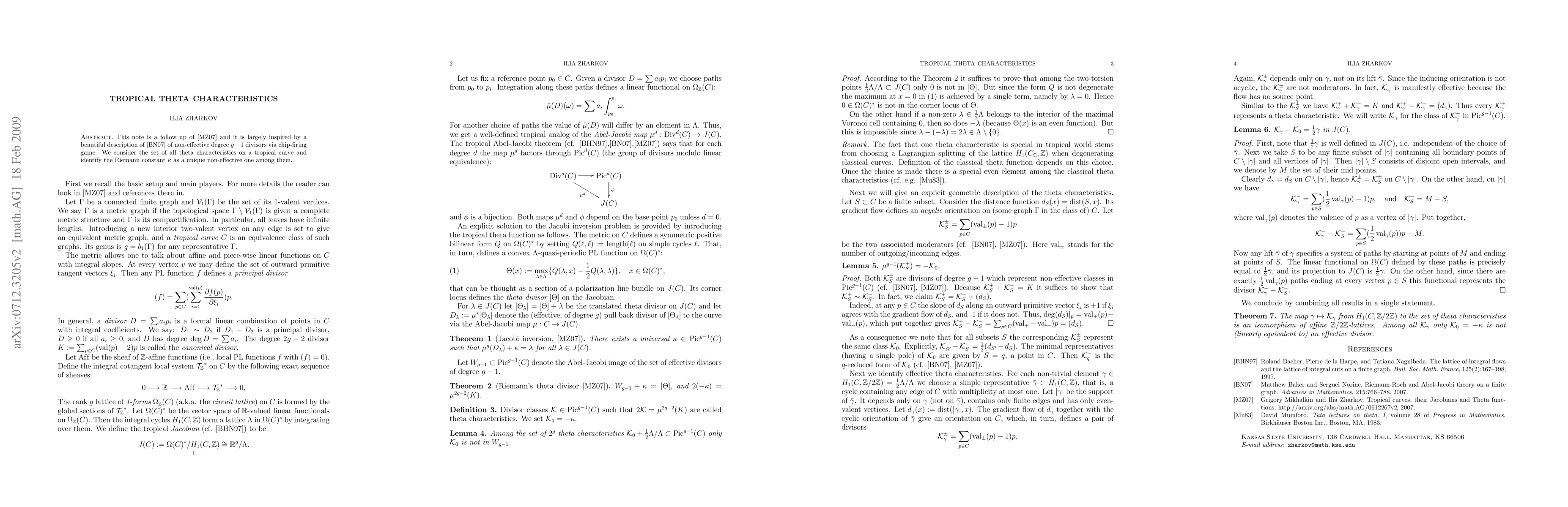 Summary: This paper builds on prior work on tropical geometry, focusing on theta characteristics on tropical curves. It identifies the Riemann constant as a unique non-effective degree (g-1) divisor through a chip-firing game analogy.