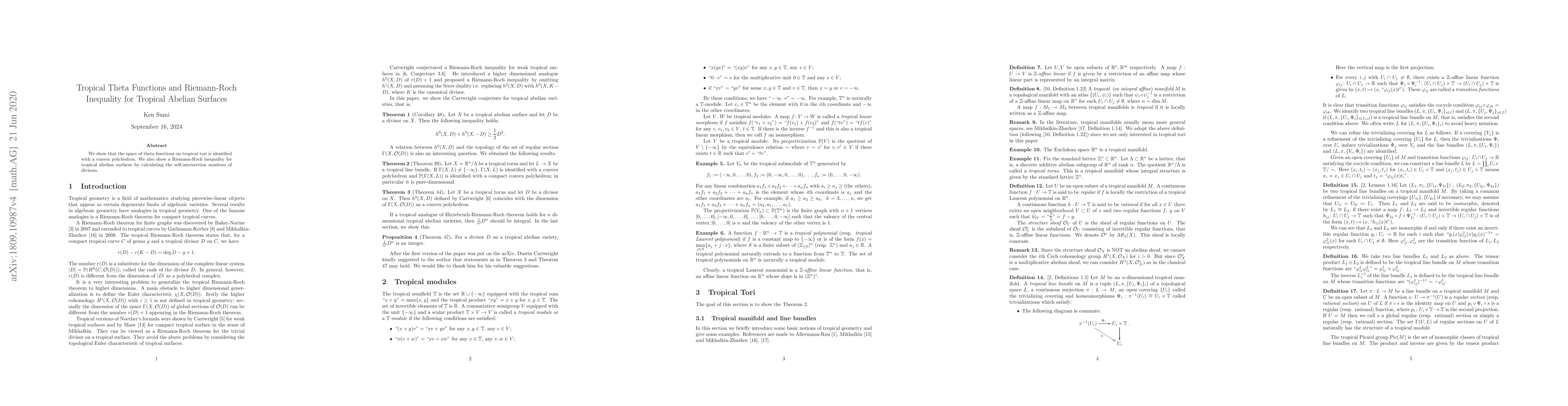 Summary: This paper establishes the identification of theta functions on tropical tori with a convex polyhedron, and derives a Riemann-Roch inequality for tropical abelian surfaces via divisor self-intersection calculations.