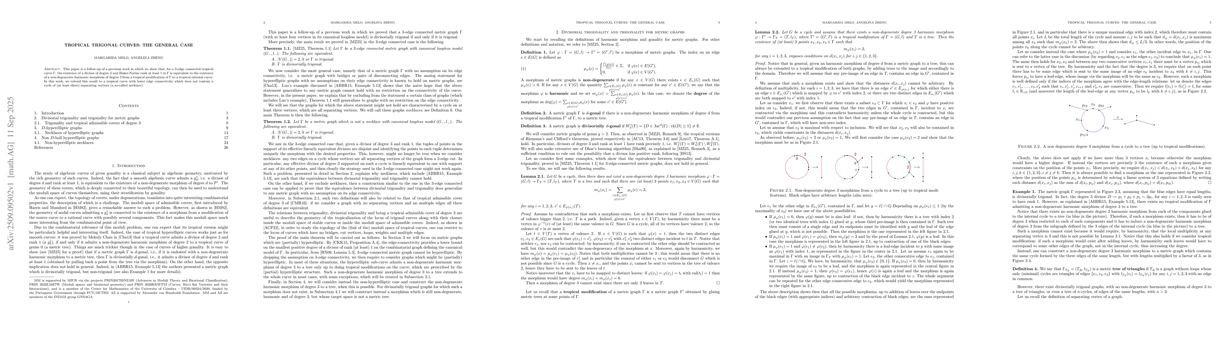 This paper is a follow-up of a previous work in which we show that, for a $3$-edge connected tropical curve $\Gamma$, the existence of a divisor of degree $3$ and Baker-Norine rank at least $1$ in $\Gamma$ is equivalent to the existence of a non-degenerate harmonic morphism of degree $3$ from a tropical modification of $\Gamma$ to a tropical rational curve. In this work, we extend this result to a tropical curve with lower edge connectivity which does not contain a cycle of (at least three) separating vertices (a so-called necklace).