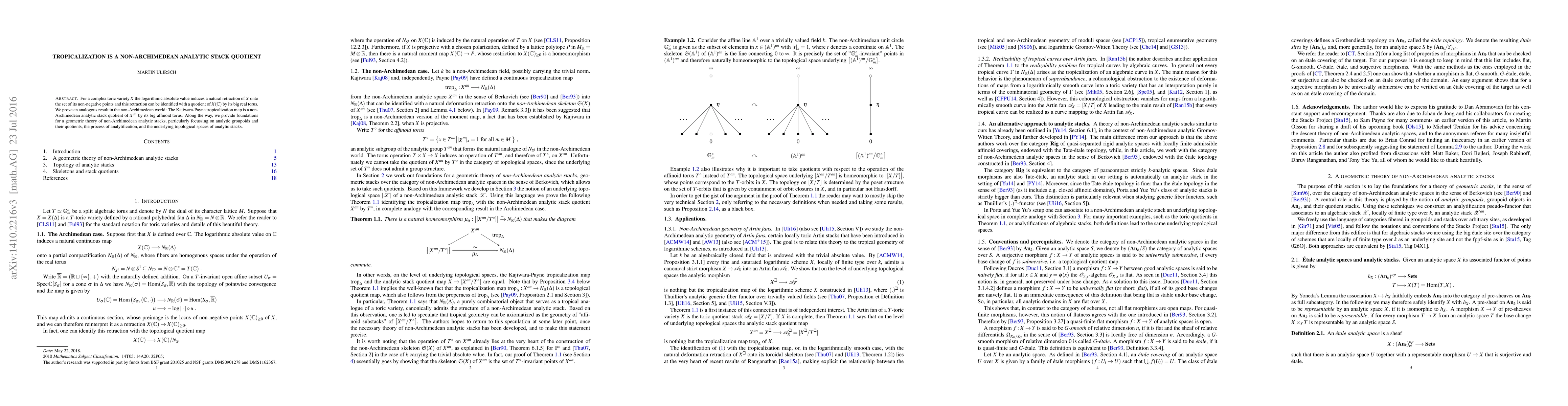 This paper establishes that the tropicalization map for complex toric varieties has an analogous non-Archimedean counterpart, proving it is an analytic stack quotient of the analytified variety by its big affinoid torus. The work lays the groundwork for a geometric theory of non-Archimedean analytic stacks.