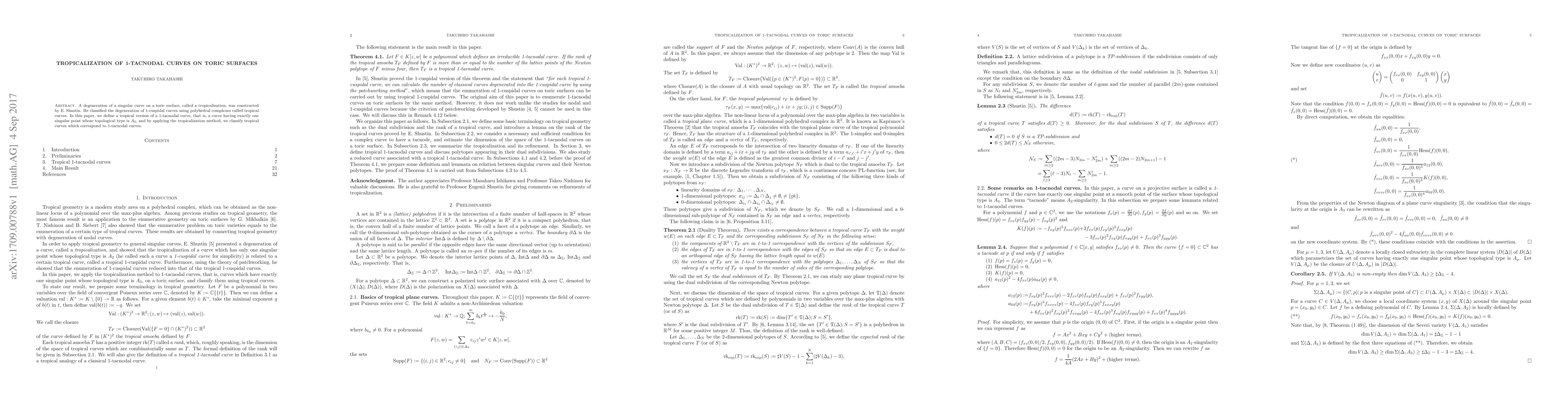 This paper introduces the tropicalization of 1-tacnodal curves on toric surfaces, classifying such degenerations using tropical curves and polyhedral complexes. The authors apply E. Shustin's method to categorize curves with a singular point of type $A_3$.