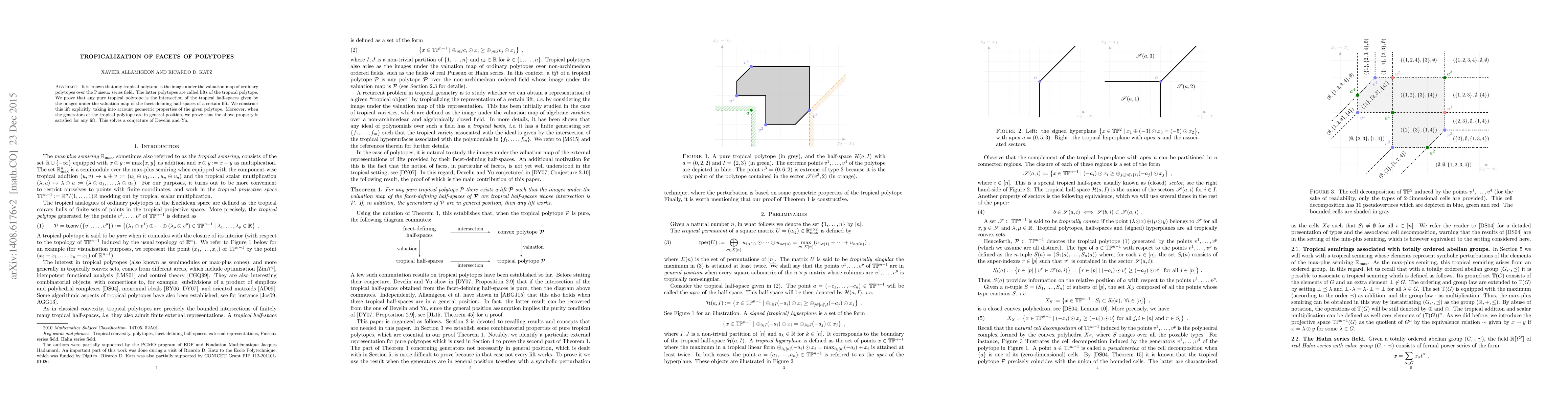 It is known that any tropical polytope is the image under the valuation map of ordinary polytopes over the Puiseux series field. The latter polytopes are called lifts of the tropical polytope. We prove that any pure tropical polytope is the intersection of the tropical half-spaces given by the images under the valuation map of the facet-defining half-spaces of a certain lift. We construct this lift explicitly, taking into account geometric properties of the given polytope. Moreover, when the generators of the tropical polytope are in general position, we prove that the above property is satisfied for any lift. This solves a conjecture of Develin and Yu.