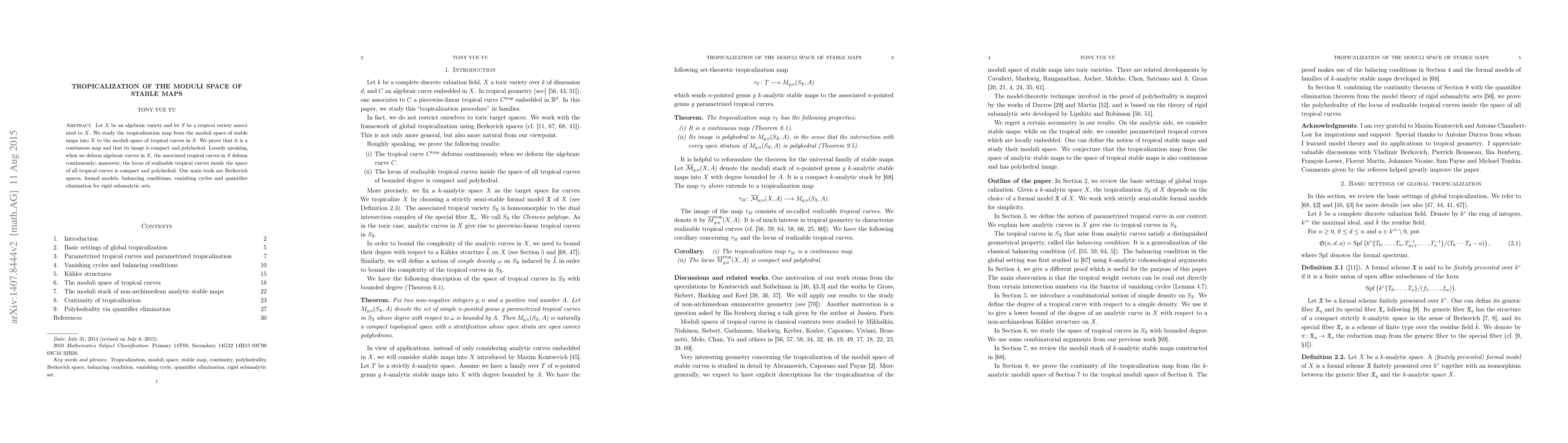 Summary: The paper explores the tropicalization map from the moduli space of stable maps into an algebraic variety $X$ to its associated tropical variety $S$, proving it is continuous with a compact and polyhedral image. The study utilizes Berkovich spaces and quantifier elimination techniques to show continuous deformation of tropical curves.