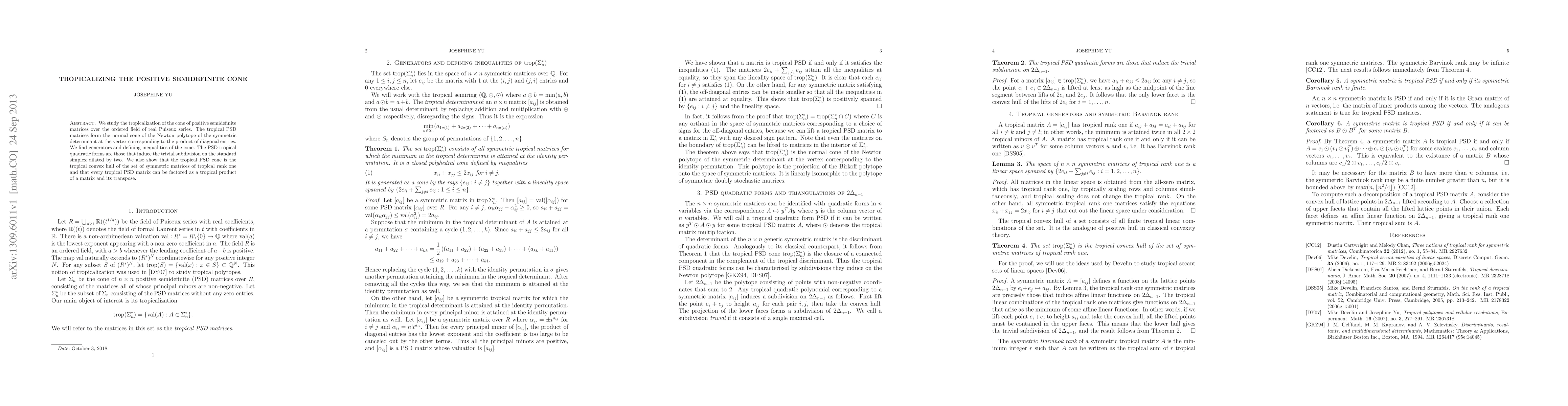 This paper investigates the tropicalization of the cone of positive semidefinite matrices over real Puiseux series, revealing its structure as the normal cone of the Newton polytope of the symmetric determinant. It identifies generators and defining inequalities for the tropical positive semidefinite cone and demonstrates that it can be expressed as the tropical convex hull of rank-one matrices.
