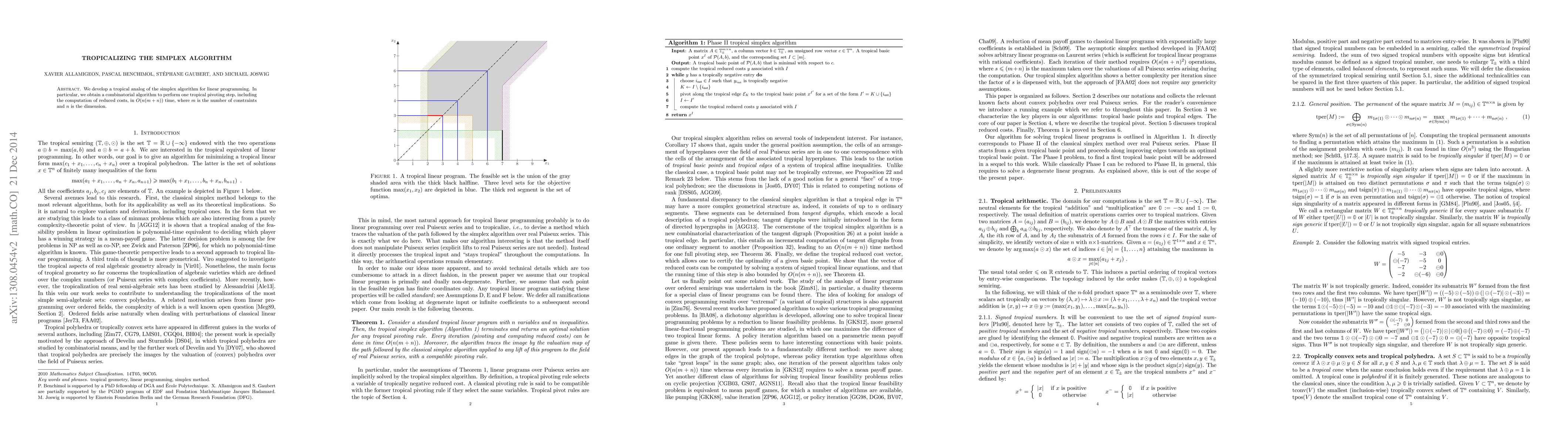 A new algorithm for solving linear programming problems using tropical mathematics has been developed with a time complexity of O(n(m+n)). This approach offers a promising alternative to traditional methods.