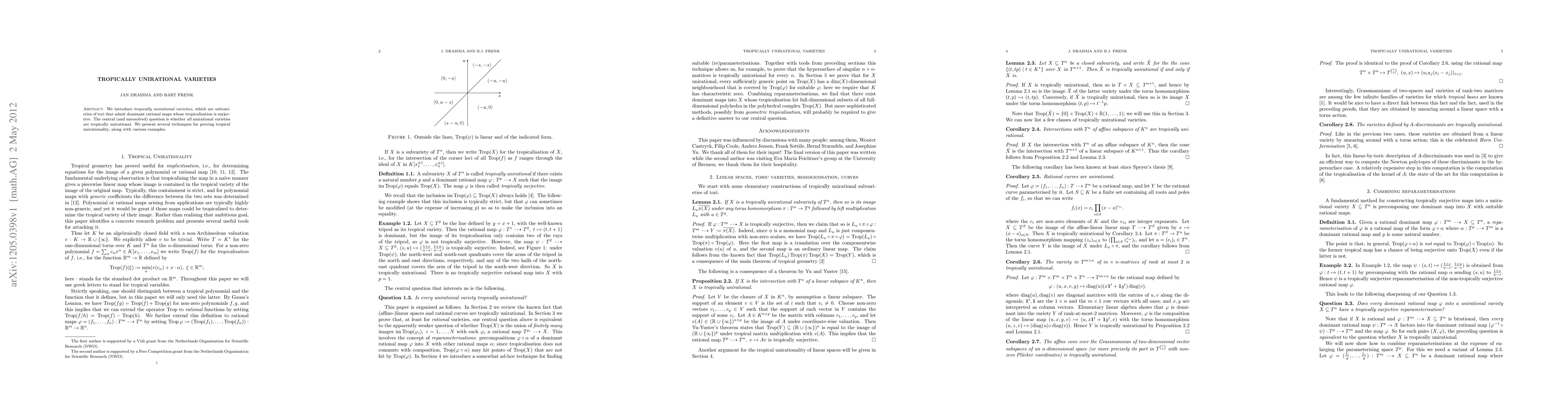 This paper introduces tropically unirational varieties—subvarieties of tori admitting dominant rational maps with surjective tropicalizations—and explores techniques to prove their tropical unirationality. The central open question is whether all unirational varieties possess this tropical characteristic.