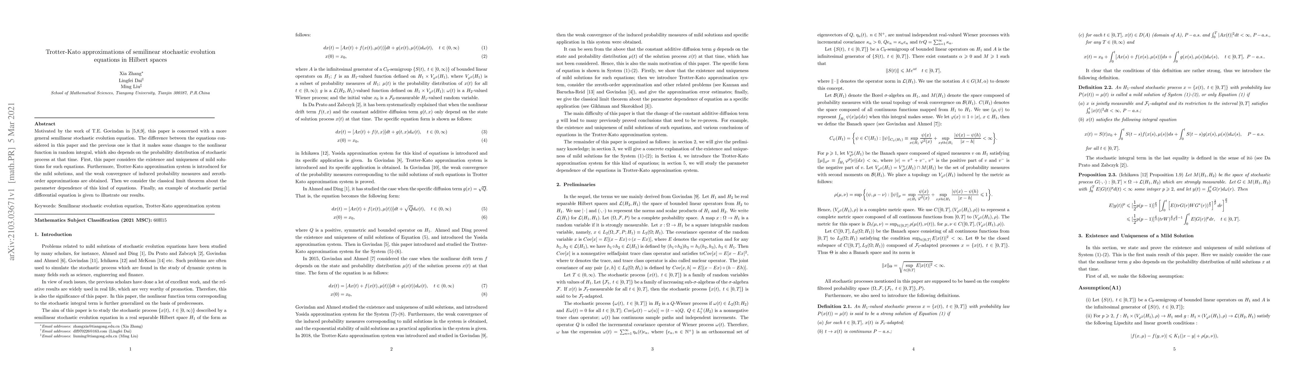 Motivated by the work of T.E. Govindan in [5,8,9], this paper is concerned with a more general semilinear stochastic evolution equation. The difference between the equations considered in this paper and the previous one is that it makes some changes to the nonlinear function in random integral, which also depends on the probability distribution of stochastic process at that time. First, this paper considers the existence and uniqueness of mild solutions for such equations. Furthermore, Trotter-Kato approximation system is introduced for the mild solutions, and the weak convergence of induced probability measures and zeroth-order approximations are obtained. Then we consider the classical limit theorem about the parameter dependence of this kind of equations. Finally, an example of stochastic partial differential equation is given to illustrate our results.