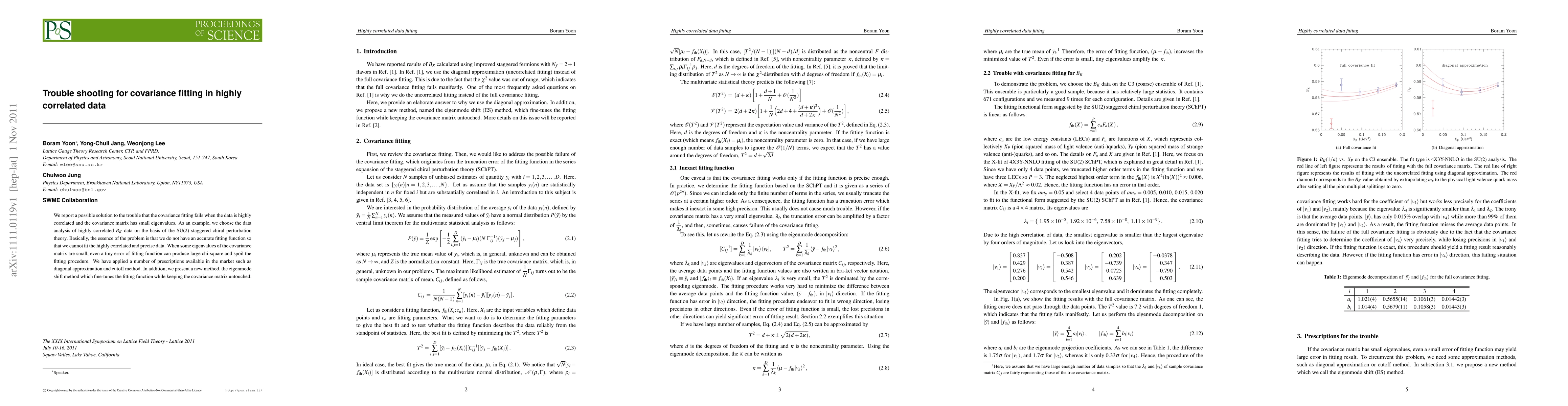 We report a possible solution to the trouble that the covariance fitting fails when the data is highly correlated and the covariance matrix has small eigenvalues. As an example, we choose the data analysis of highly correlated $B_K$ data on the basis of the SU(2) staggered chiral perturbation theory. Basically, the essence of the problem is that we do not have an accurate fitting function so that we cannot fit the highly correlated and precise data. When some eigenvalues of the covariance matrix are small, even a tiny error of fitting function can produce large chi-square and spoil the fitting procedure. We have applied a number of prescriptions available in the market such as diagonal approximation and cutoff method. In addition, we present a new method, the eigenmode shift method which fine-tunes the fitting function while keeping the covariance matrix untouched.