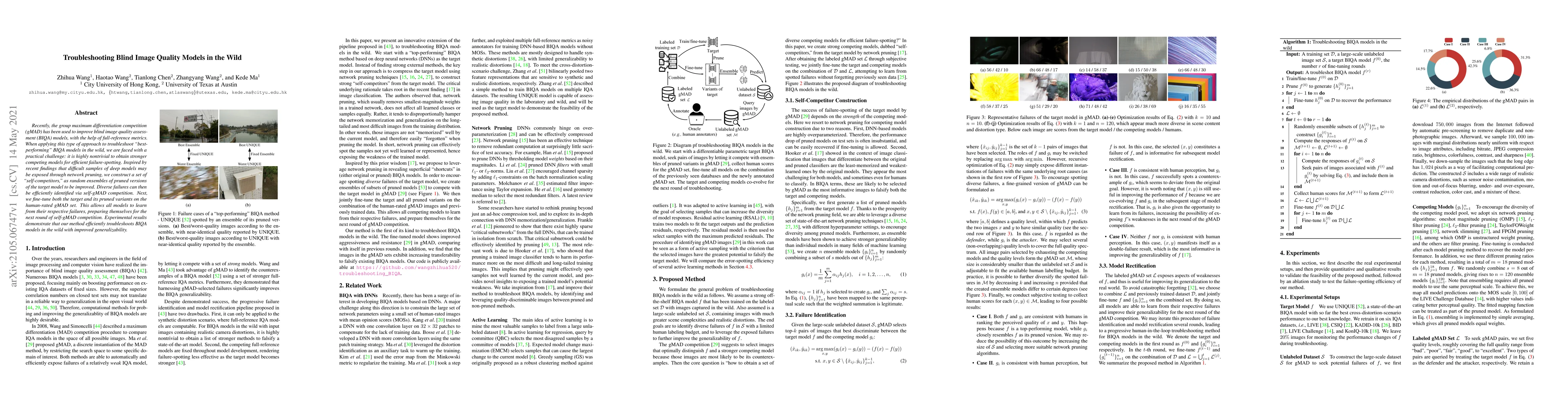 Recently, the group maximum differentiation competition (gMAD) has been used to improve blind image quality assessment (BIQA) models, with the help of full-reference metrics. When applying this type of approach to troubleshoot "best-performing" BIQA models in the wild, we are faced with a practical challenge: it is highly nontrivial to obtain stronger competing models for efficient failure-spotting. Inspired by recent findings that difficult samples of deep models may be exposed through network pruning, we construct a set of "self-competitors," as random ensembles of pruned versions of the target model to be improved. Diverse failures can then be efficiently identified via self-gMAD competition. Next, we fine-tune both the target and its pruned variants on the human-rated gMAD set. This allows all models to learn from their respective failures, preparing themselves for the next round of self-gMAD competition. Experimental results demonstrate that our method efficiently troubleshoots BIQA models in the wild with improved generalizability.