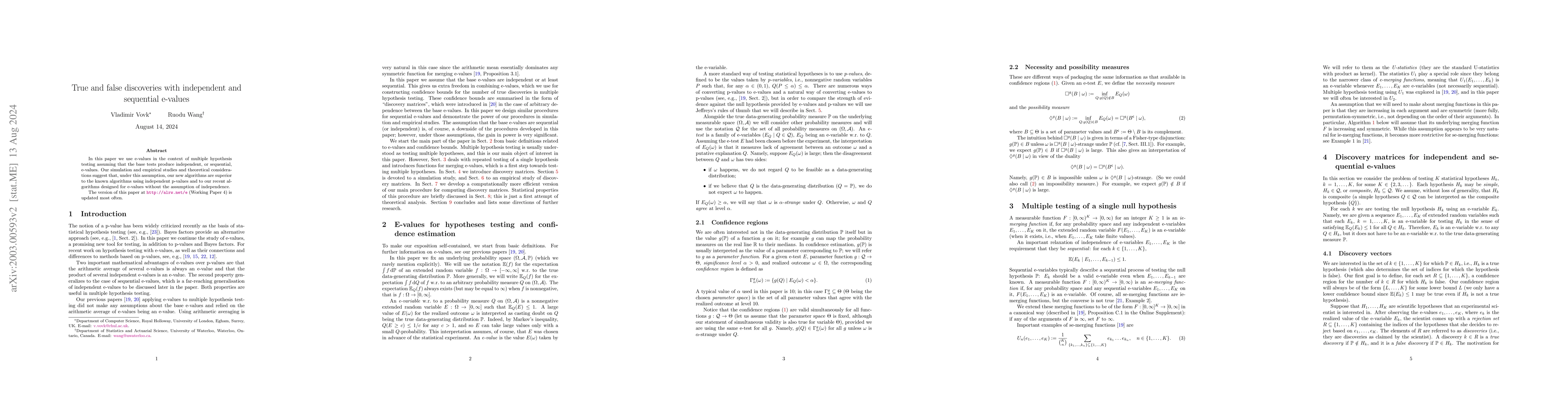 The paper proposes new algorithms for multiple hypothesis testing using e-values, assuming independent e-values from base tests. Simulation studies and theoretical considerations support the superiority of these algorithms over existing methods using independent p-values or non-independent e-values.