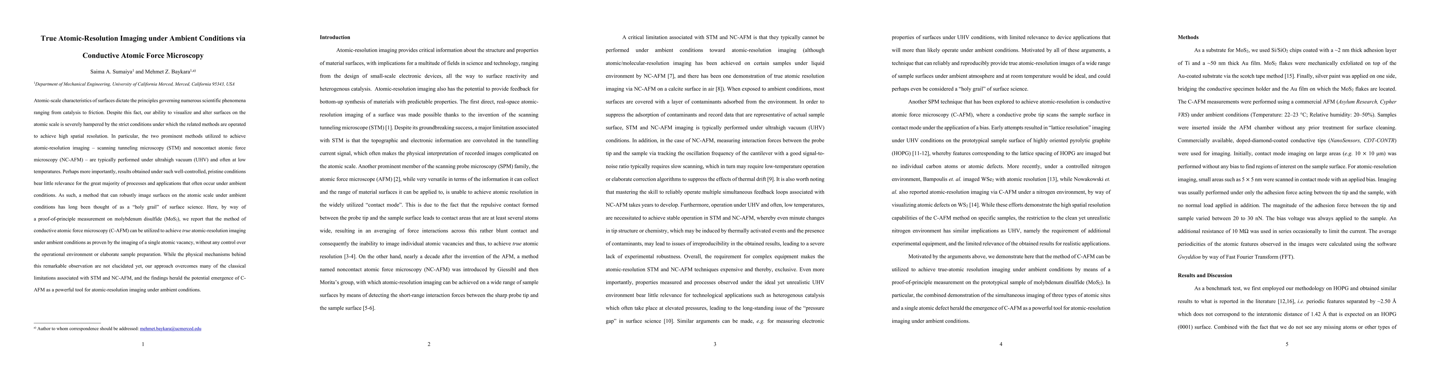 The study presents a proof-of-principle demonstration of C-AFM's capabilities for true atomic-resolution imaging under ambient conditions.