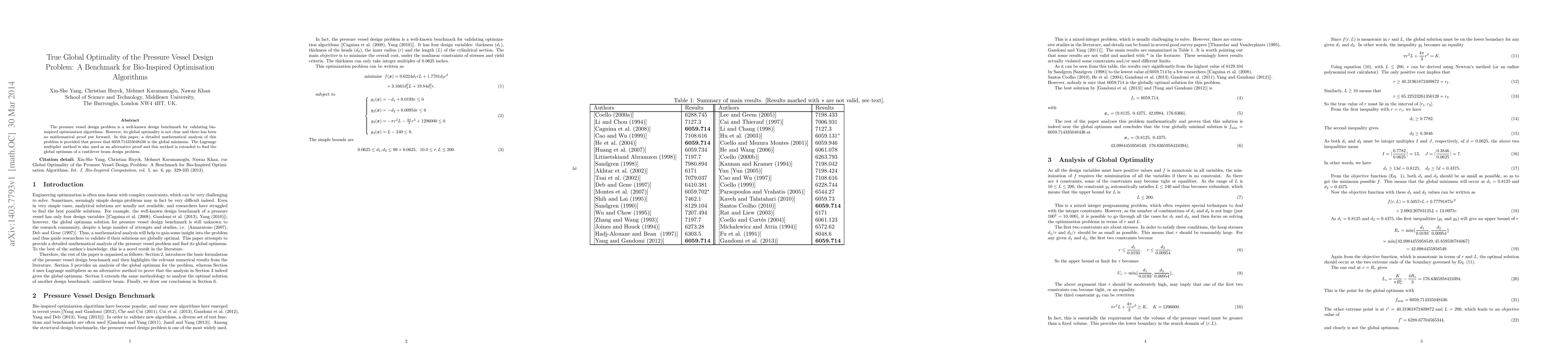 The pressure vessel design problem is a well-known design benchmark for validating bio-inspired optimization algorithms. However, its global optimality is not clear and there has been no mathematical proof put forward. In this paper, a detailed mathematical analysis of this problem is provided that proves that 6059.714335048436 is the global minimum. The Lagrange multiplier method is also used as an alternative proof and this method is extended to find the global optimum of a cantilever beam design problem.