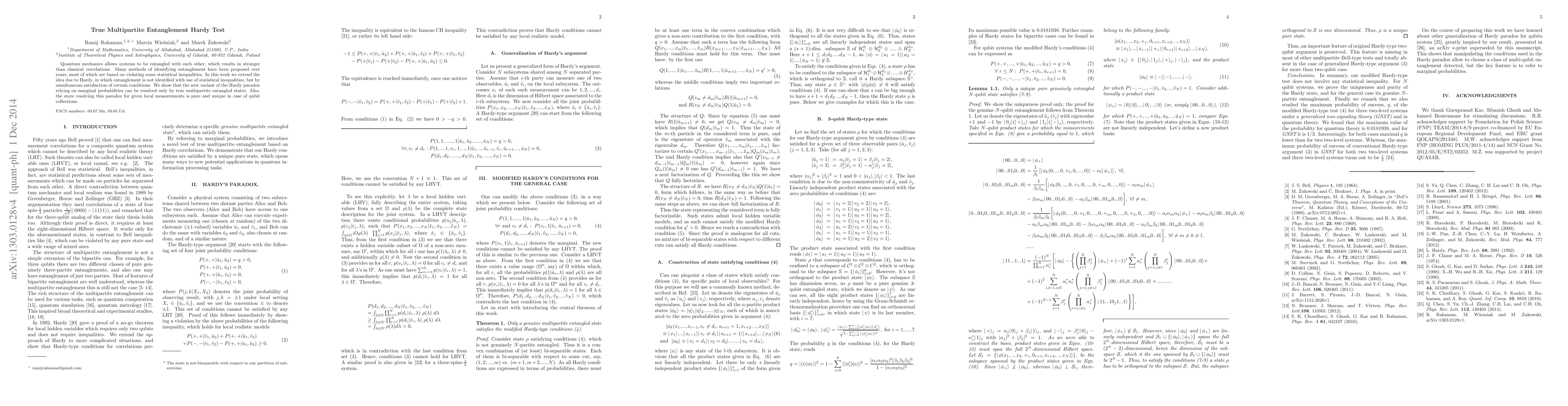 Quantum mechanics allows systems to be entangled with each other, which results in stronger than classical correlations. Many methods of identifying entanglement have been proposed over years, most of which are based on violating some statistical inequalities. In this work we extend the idea due to Hardy, in which entanglement is not identified with use of statistical inequalities, but by simultaneous satisfaction of certain conditions. We show that the new variant of the Hardy paradox relying on marginal probabilities can be resolved only by true multipartite entangled states. Also, the state resolving this paradox for given local measurements is pure and unique in case of qubit collections.