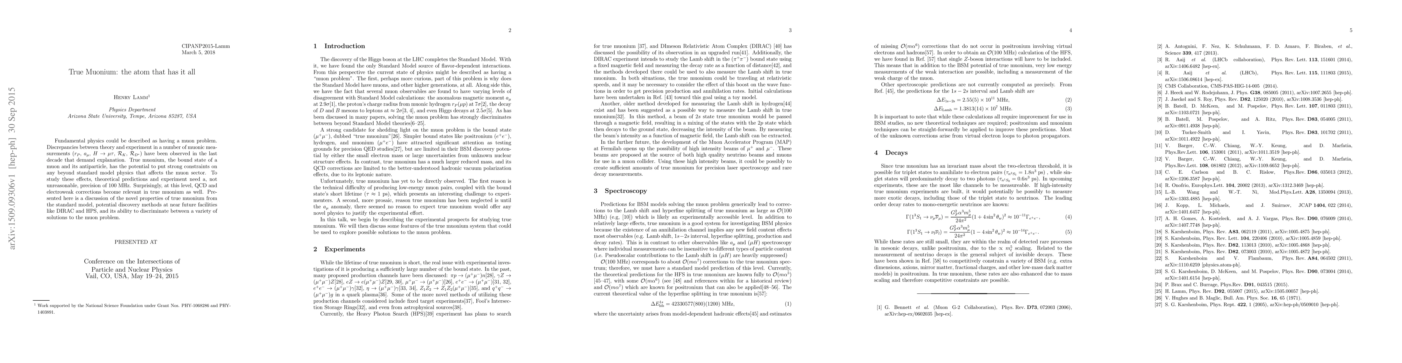 Researchers explore true muonium, a bound state of a muon and its antiparticle, as a tool to explain discrepancies between theory and experiment in fundamental physics measurements. The study reveals novel properties of true muonium that could help resolve the 'muon problem' and potentially constrain beyond standard model physics.