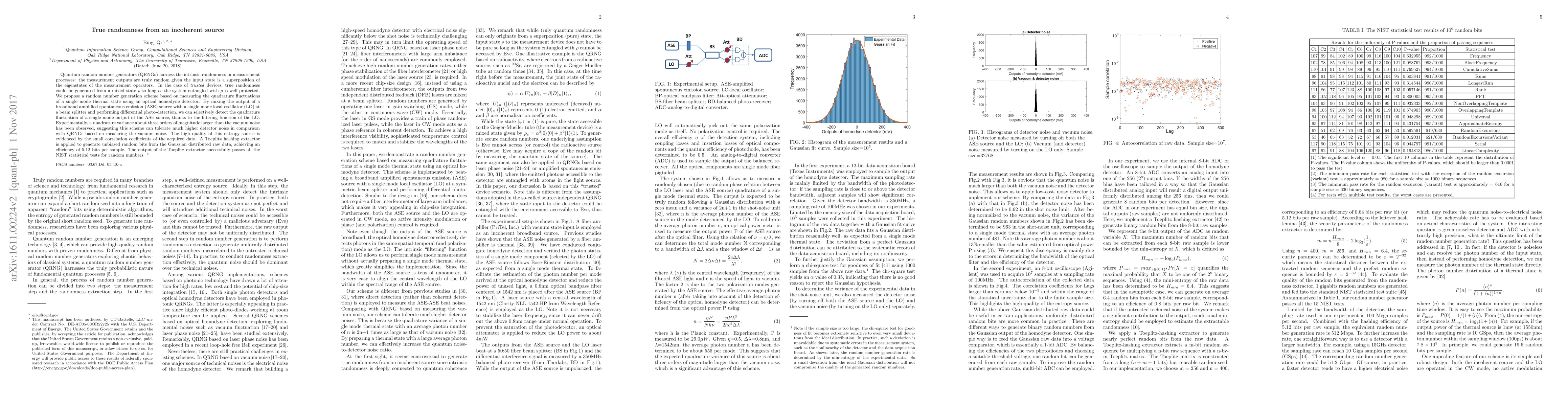 This paper proposes a novel quantum random number generator (QRNG) based on measuring quadrature fluctuations of a thermal state from an incoherent source. The scheme uses homodyne detection of amplified spontaneous emission to achieve high-quality randomness, passing stringent NIST statistical tests for random numbers with an efficiency of 5.12 bits per sample.