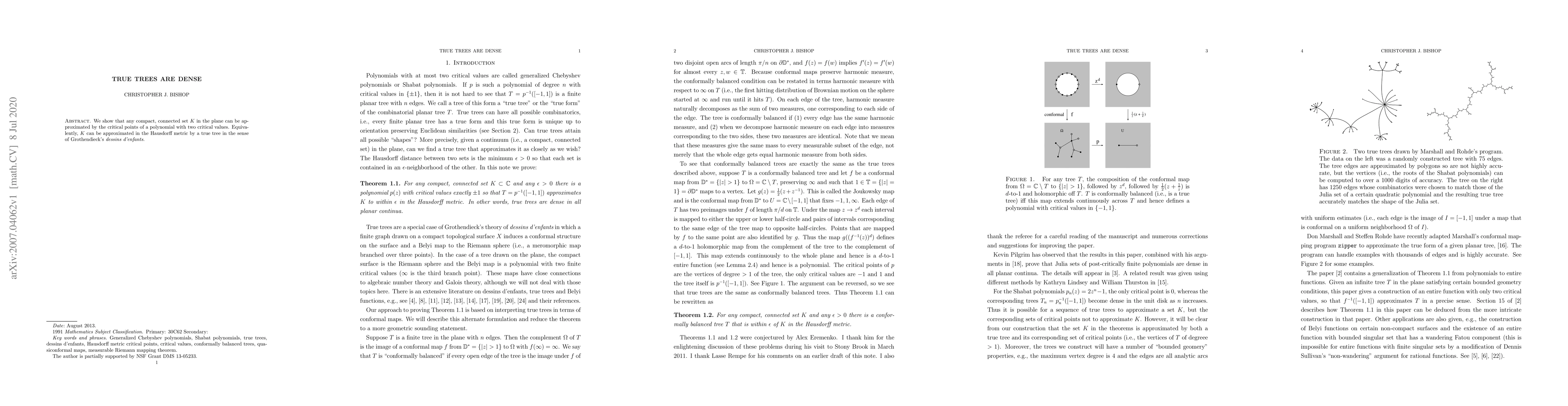 We show that any compact, connected set $K$ in the plane can be approximated by the critical points of a polynomial with two critical values. Equivalently, $K$ can be approximated in the Hausdorff metric by a true tree in the sense of Grothendieck's dessins d'enfants.