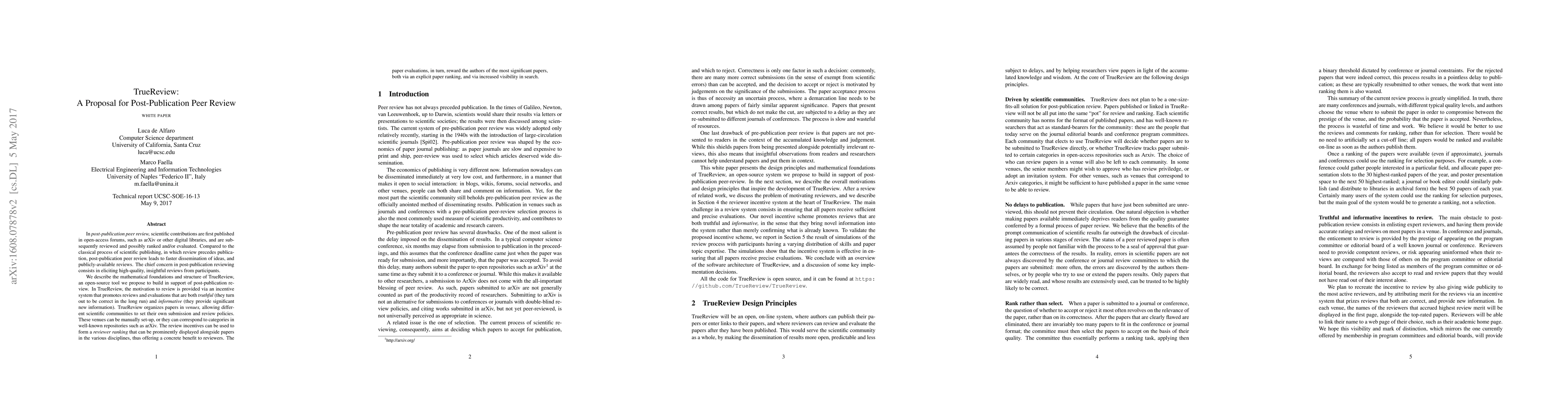 TrueReview is an open-source platform designed to support post-publication peer review, utilizing an incentive system to encourage high-quality, insightful reviews. It allows scientific communities to establish their own review policies and ranks reviewers and papers based on contributions.