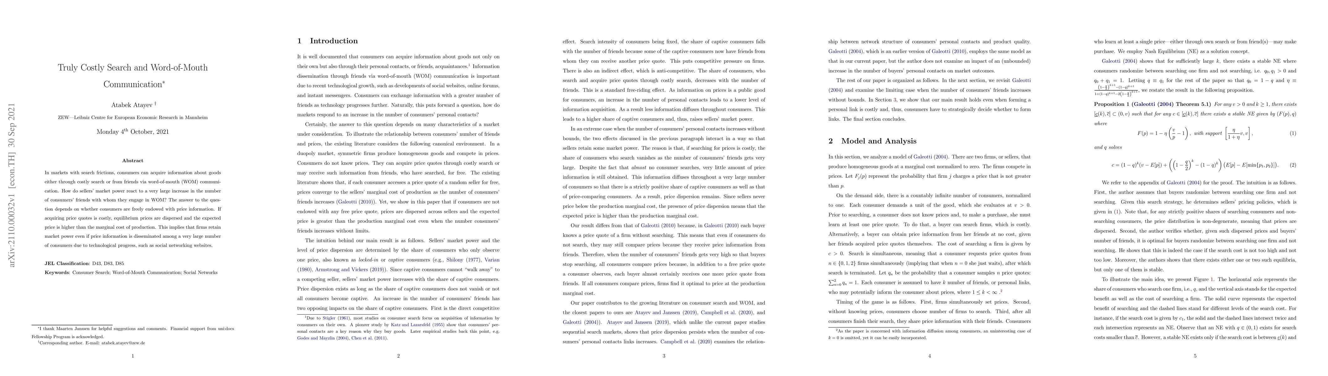 This paper examines how sellers' market power is affected by a significant increase in consumers' word-of-mouth communication, especially when acquiring price information is costly. It finds that even with widespread price dissemination through social networks, firms retain market power due to dispersed equilibrium prices.