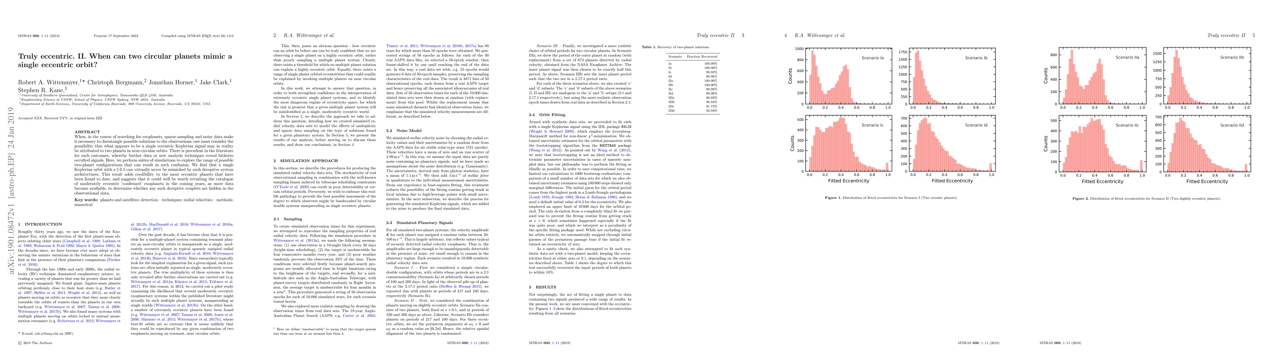 This paper explores the possibility that observed eccentric exoplanetary orbits might actually be the result of two planets in near-circular orbits. Simulations show that highly eccentric orbits ($e>$0.5) are unlikely to be mimicked by such configurations, reinforcing the authenticity of current eccentric exoplanet discoveries.