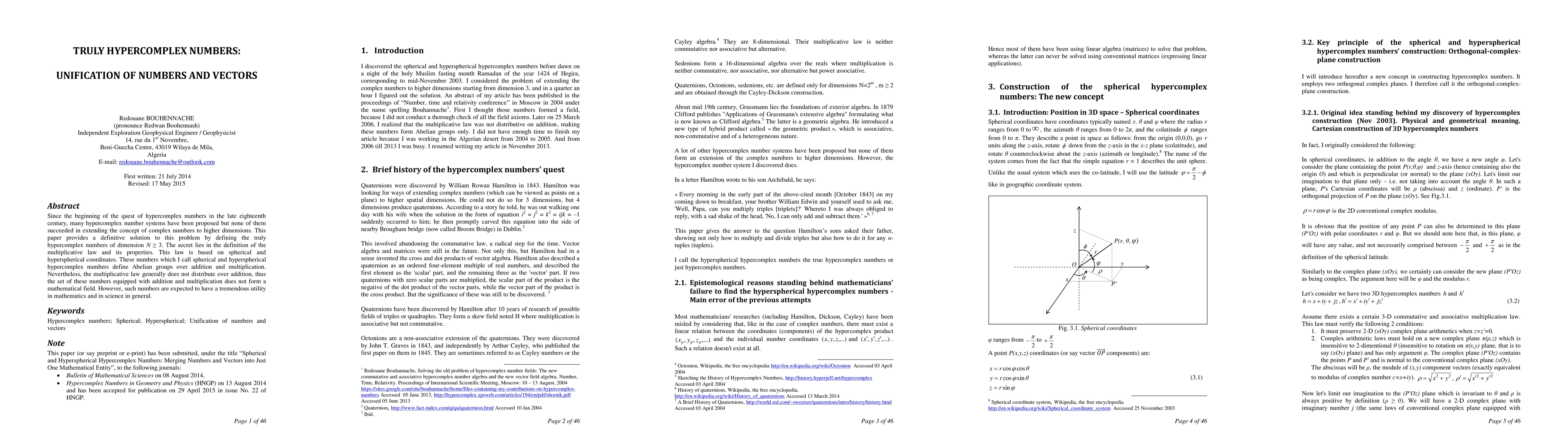 Since the beginning of the quest of hypercomplex numbers in the late eighteenth century, many hypercomplex number systems have been proposed but none of them succeeded in extending the concept of complex numbers to higher dimensions. This paper provides a definitive solution to this problem by defining the truly hypercomplex numbers of dimension N greater than or equal to 3. The secret lies in the definition of the multiplicative law and its properties. This law is based on spherical and hyperspherical coordinates. These numbers which I call spherical and hyperspherical hypercomplex numbers define Abelian groups over addition and multiplication. Nevertheless, the multiplicative law generally does not distribute over addition, thus the set of these numbers equipped with addition and multiplication does not form a mathematical field. However, such numbers are expected to have a tremendous utility in mathematics and in science in general.
